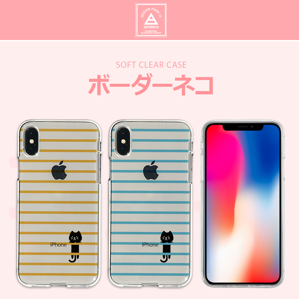 iPhone XS / X ケース iPhone XR ケース Dparks ソフトクリアケース ボーダーネコ(ディーパークス)アイフォン カバー