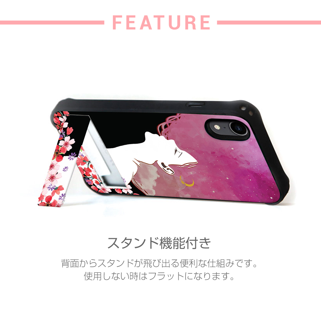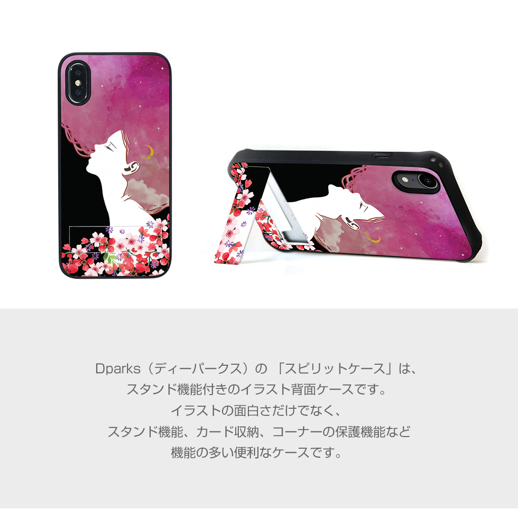 Dparks(ディーパークス)の 「スピリットケース」は、スタンド機能付きのイラスト背面ケースです。イラストの面白さだけでなく、スタンド機能、カード収納、コーナーの保護機能など機能の多い便利なケースです。