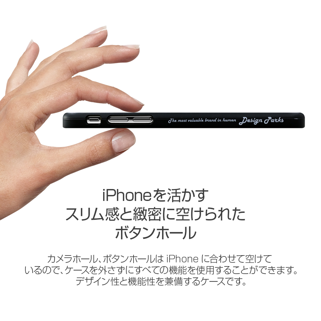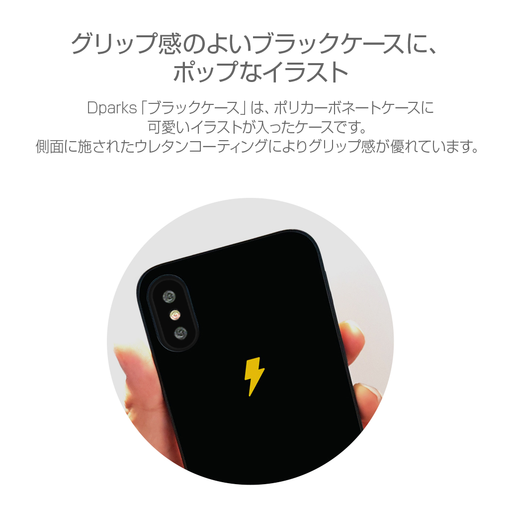 Dparks 「ブラックケース」は、ポリカーボネートケースに可愛いイラストが入ったケースです。側面に施されたウレタンコーティングによりグリップ感が優れています。