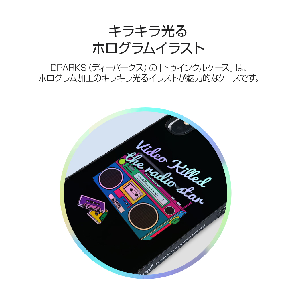 DPARKS(ディーパークス)の「トゥインクルケース」は、ホログラム加工のキラキラ光るイラストが魅力的なケースです。