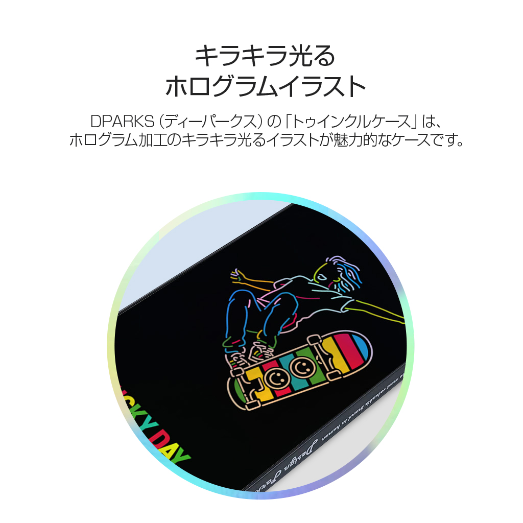 DPARKS(ディーパークス)の「トゥインクルケース」は、ホログラム加工のキラキラ光るイラストが魅力的なケースです。