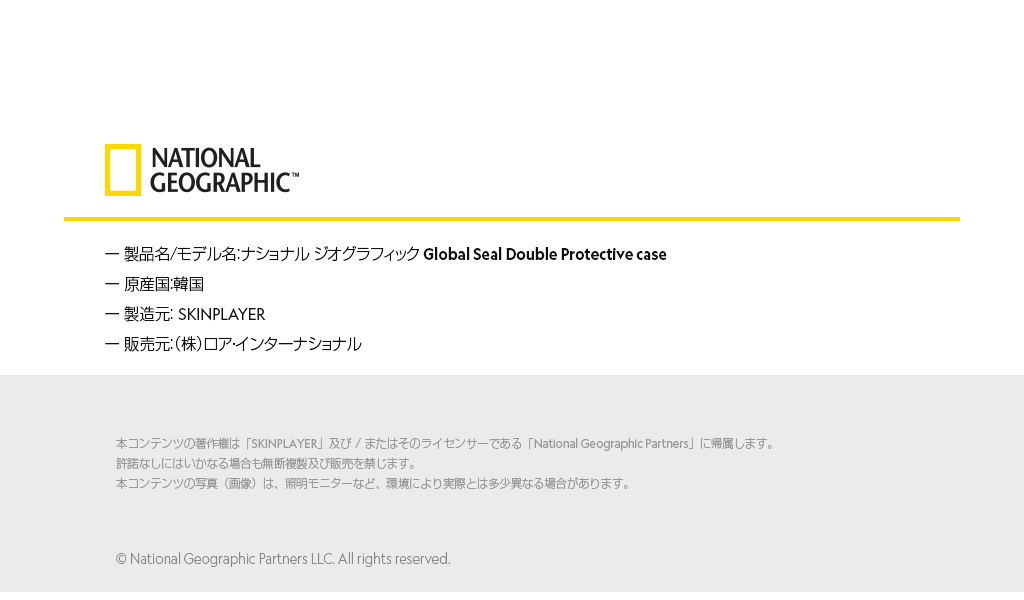 National Geographic(ナショナルジオグラフィック)の「グローバルシール ダブルプロテクティブケース」は、National Geographicの代表的なグラフィックデザインが印刷されたケースです。