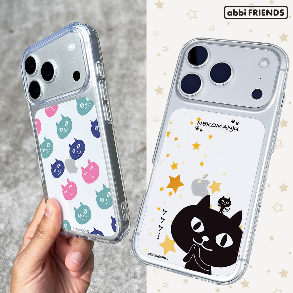 abbi FRIENDS(アビィフレンズ)の「ネコマンジュウソフトクリアケース」は、ユニークな「ネコマンジュウ」の公式ライセンスのイラストケースです。
