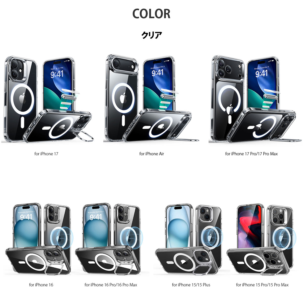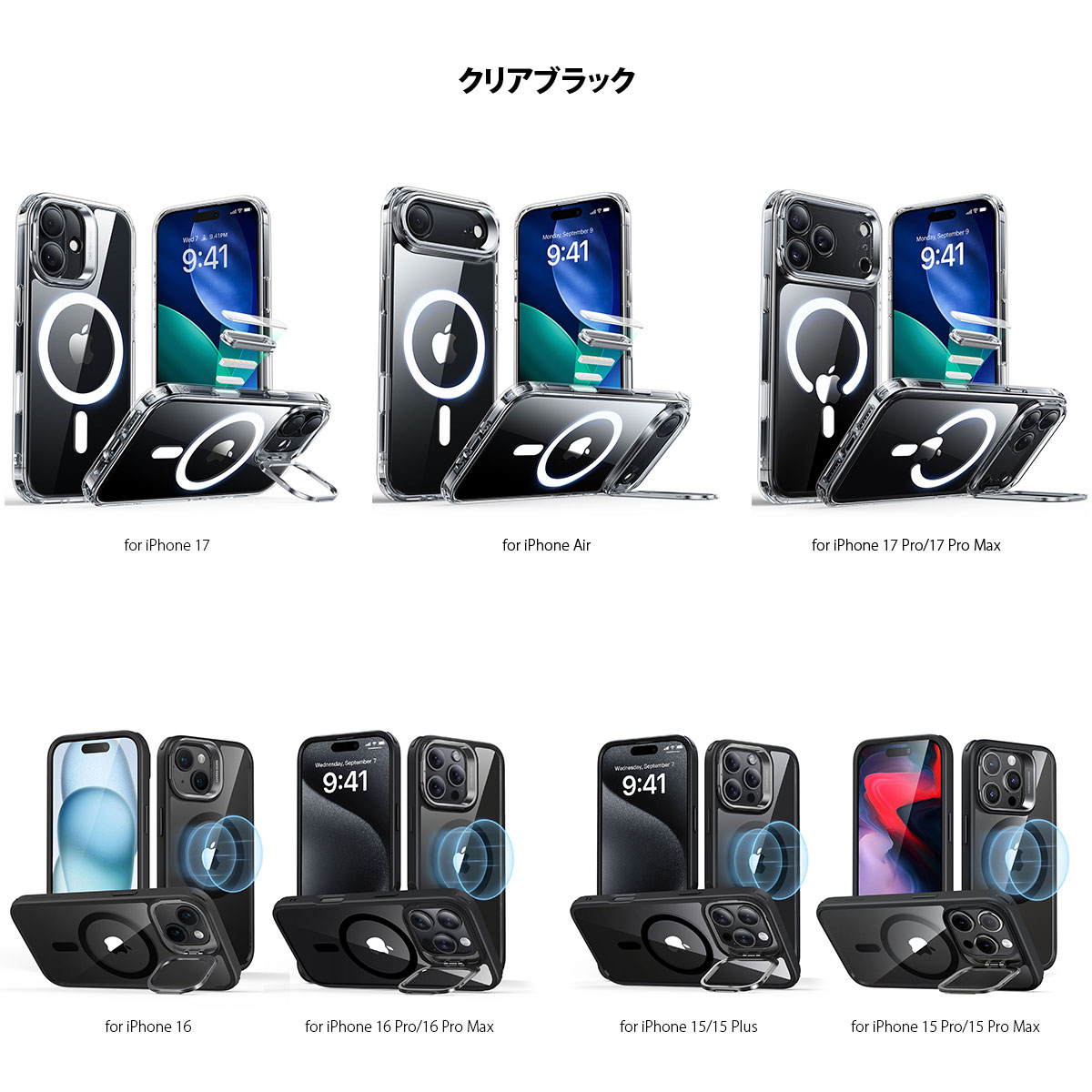 ![[ iPhone 17 / iPhone Air / 17 Pro / 17 Pro Max 用] 米軍MIL規格 Classic スタンド付きハイブリッドケース 透明カバー for iPhone 17 / 16 / 15 シリーズ](https://makeshop-multi-images.akamaized.net/mycase/itemimages/000000006761_13MLWAN.jpg)