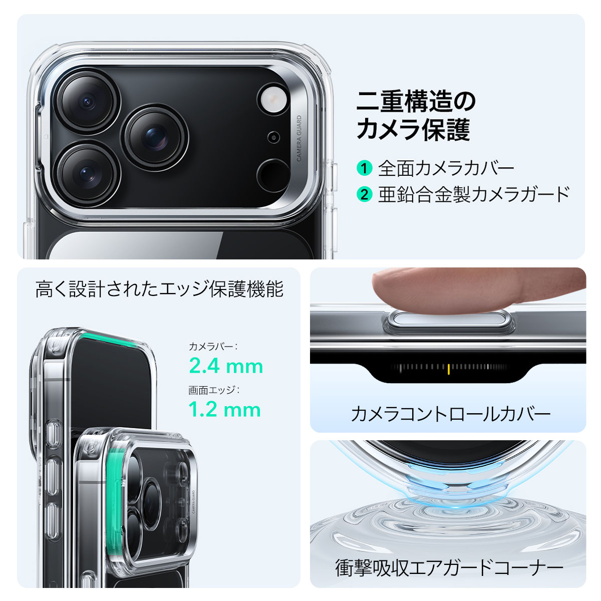 サイドボタンや音量ボタンはカバーで覆う構造を採用し、細かなゴミの侵入を防止。さらにポートやカメラ部分にも精密に対応しているため、ケースを装着したまま全ての機能をスムーズに使用できます。