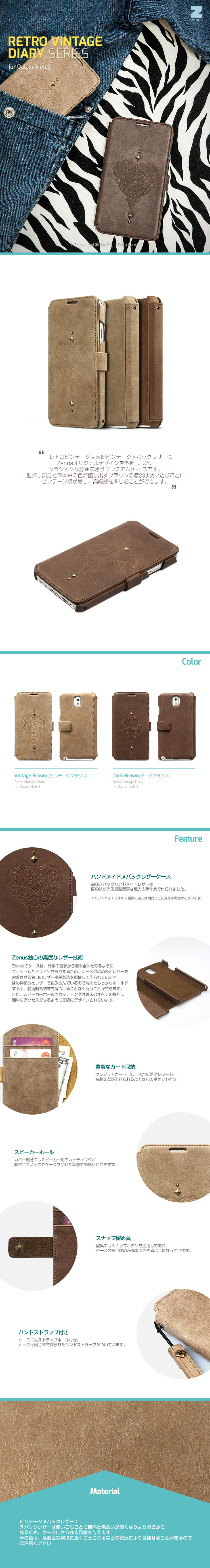 | ・商品名 | Prestige Retro Vintage Diary(プレステージ レトロビンテージダイアリー) | ・対応機種 | ≪docomo≫ GALAXY Note 3 SC-01F、≪au≫ GALAXY Note 3 SCL22 |