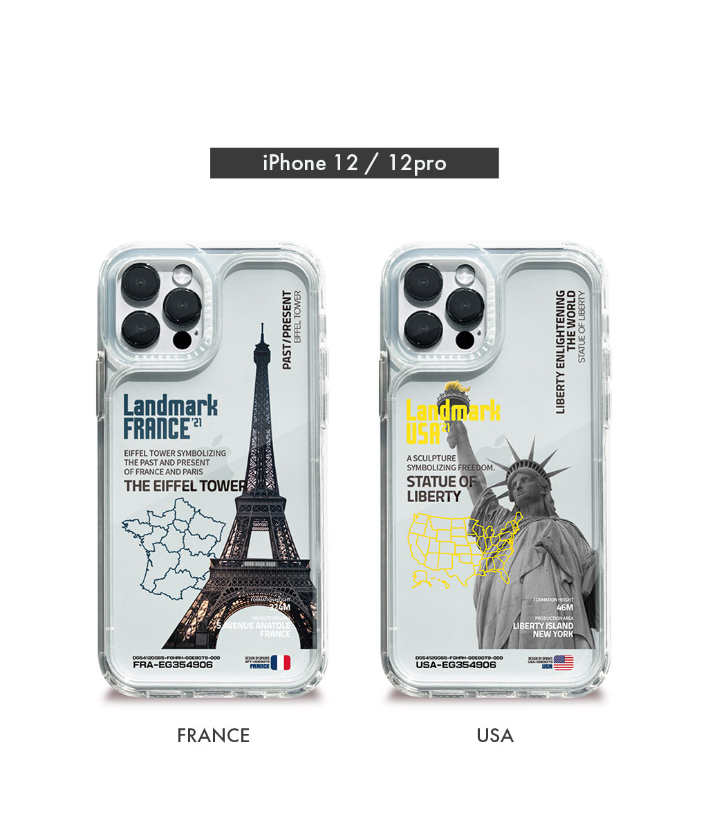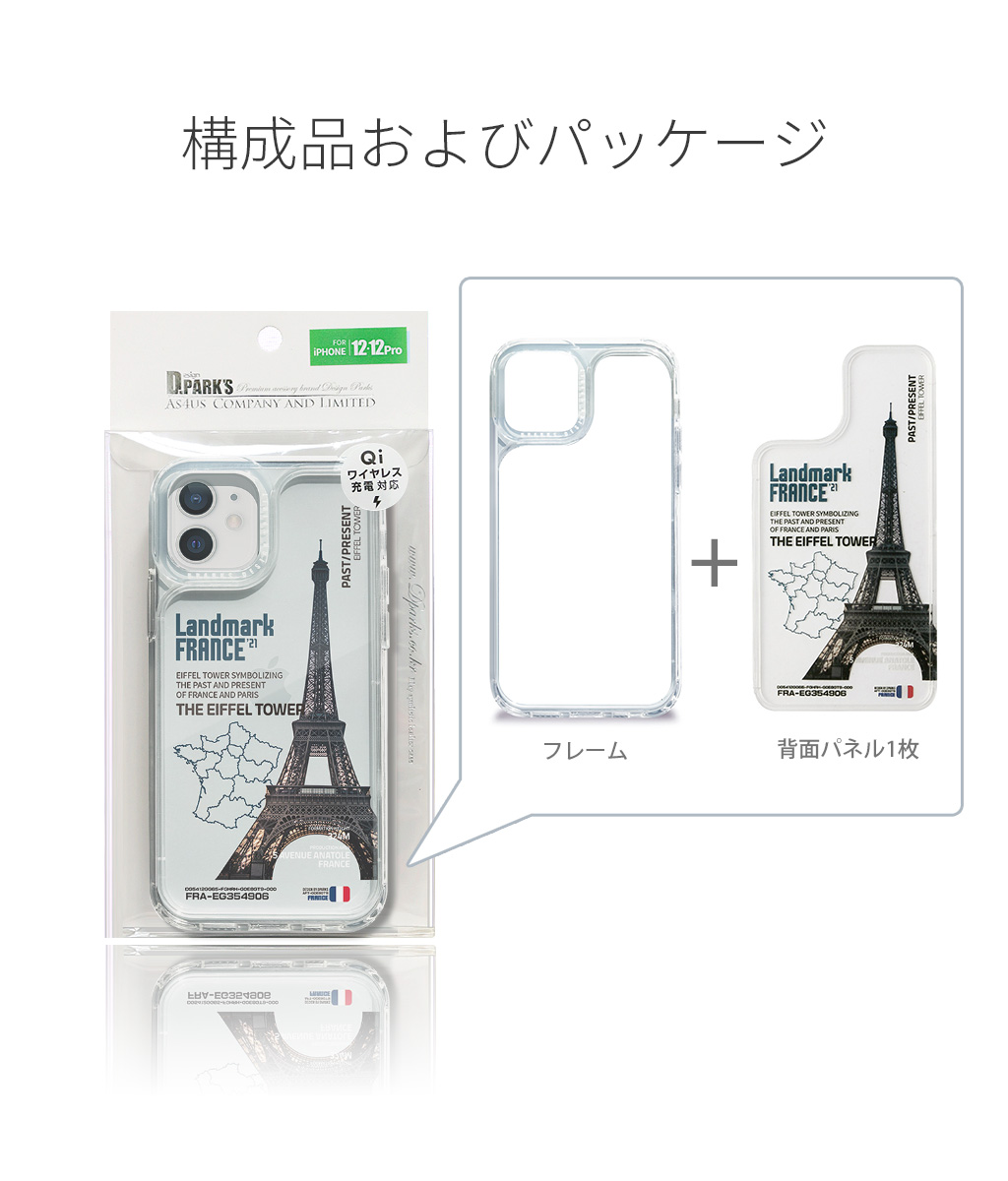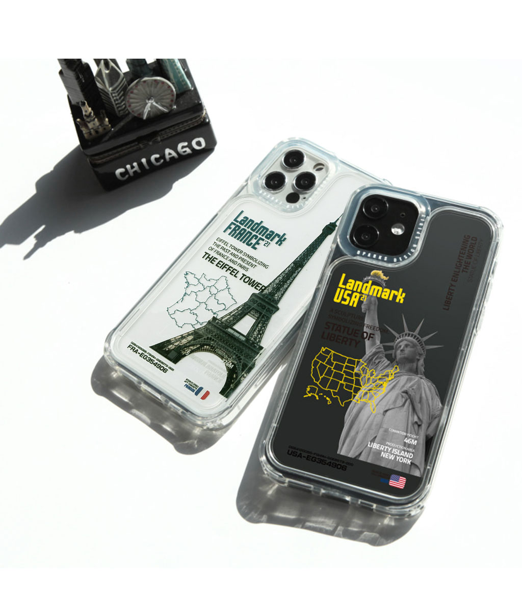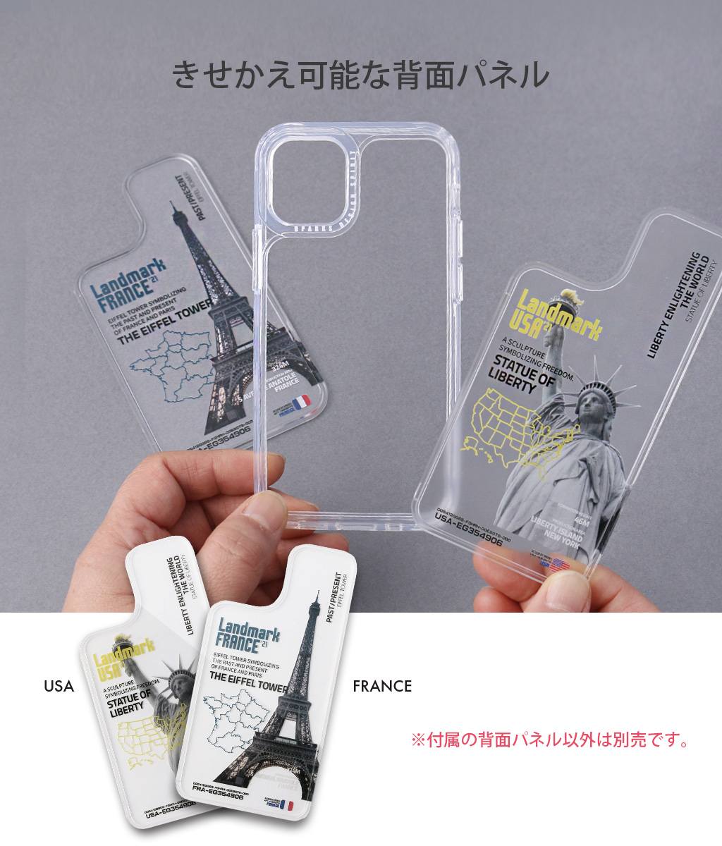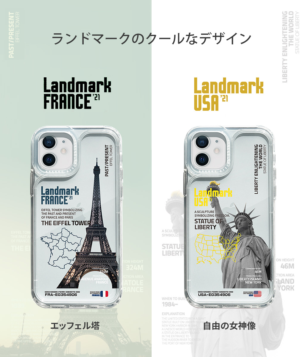 【iPhone 12 mini / iPhone 12 / 12 Pro ケース】Dparks スピリットPLUS クリアケース LANDMARK FREANCE / USA きせかえ背面カバー