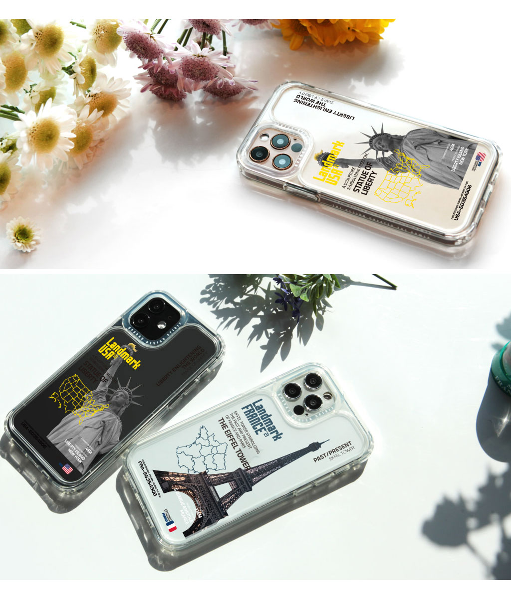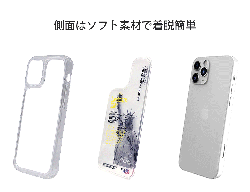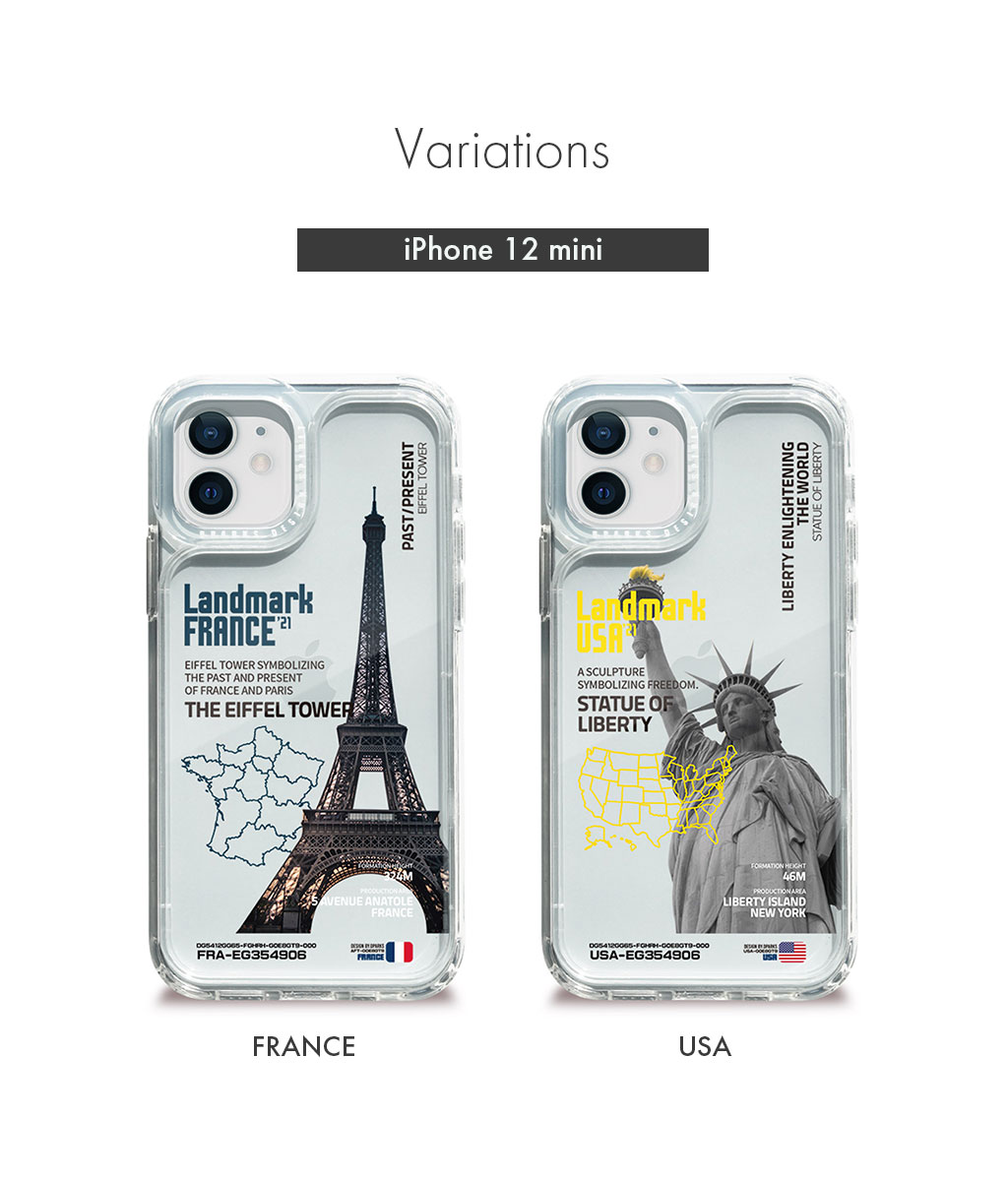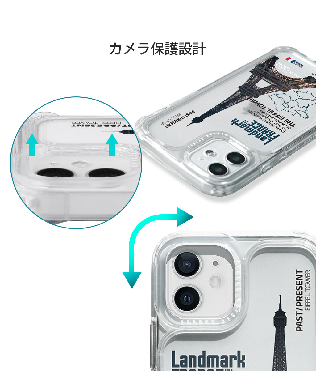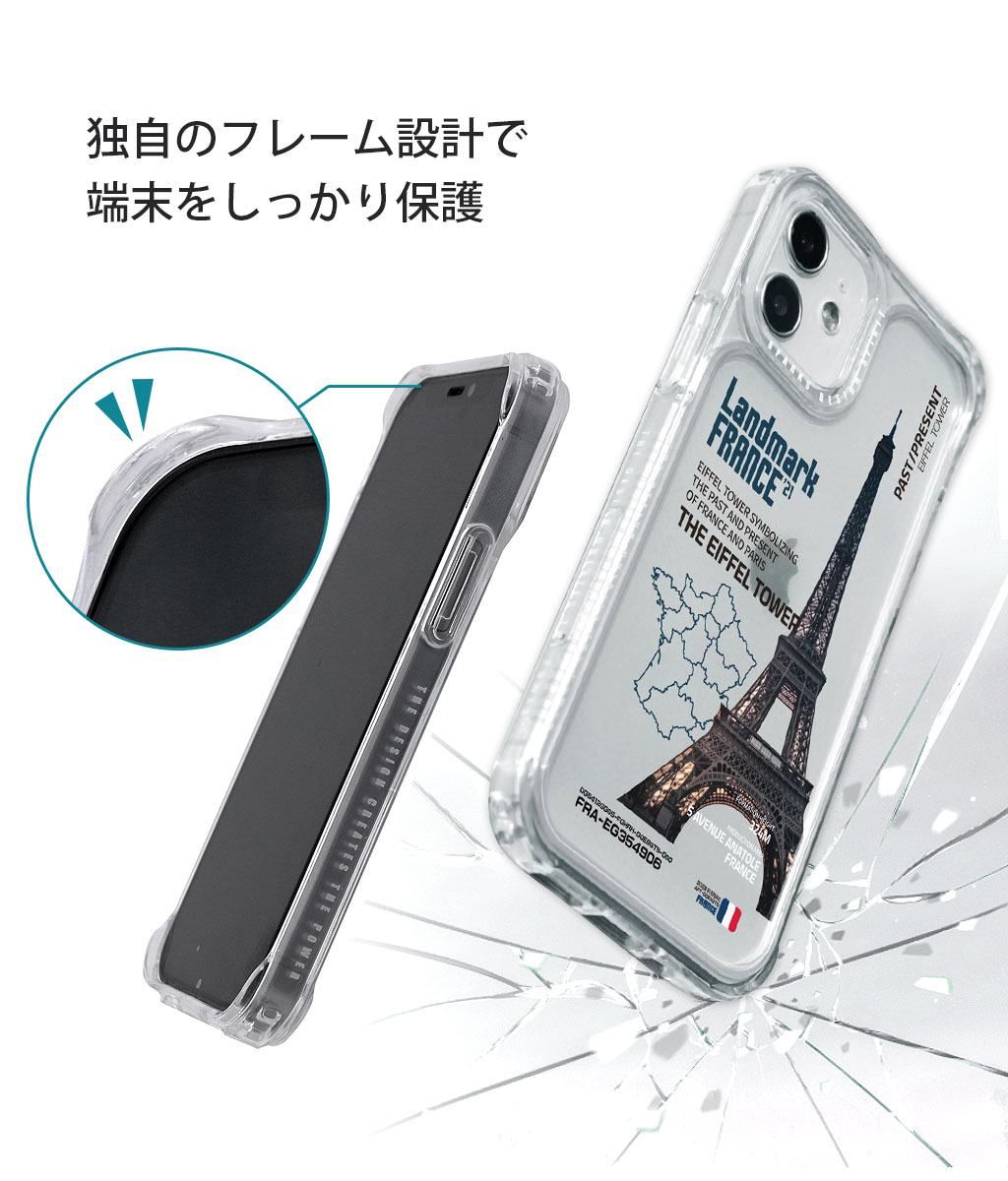 【iPhone 12 mini / iPhone 12 / 12 Pro ケース】Dparks スピリットPLUS クリアケース LANDMARK FREANCE / USA きせかえ背面カバー