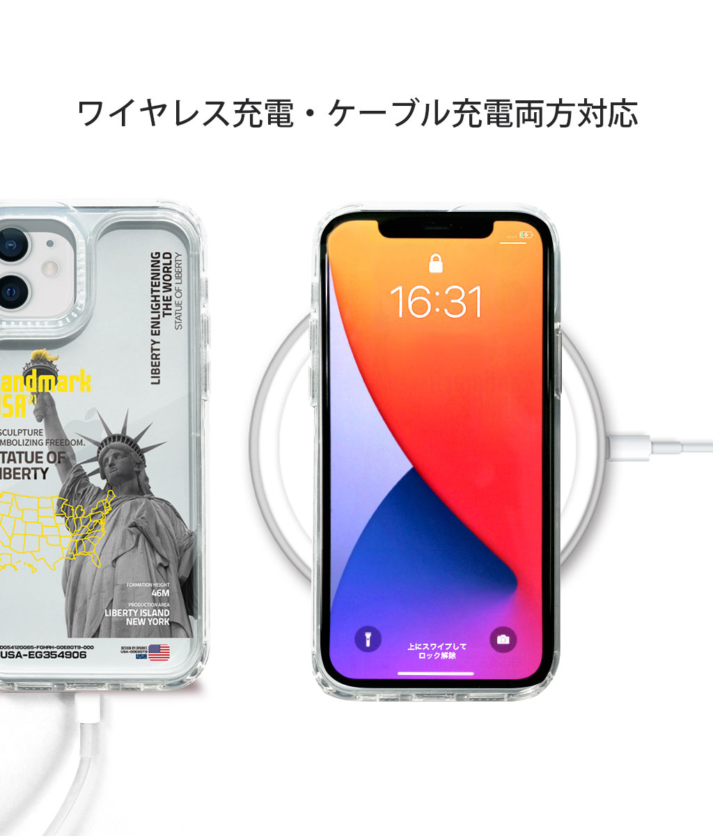 ケースをつけたままQi(チー)対応ワイヤレス充電やケーブル充電が可能です。