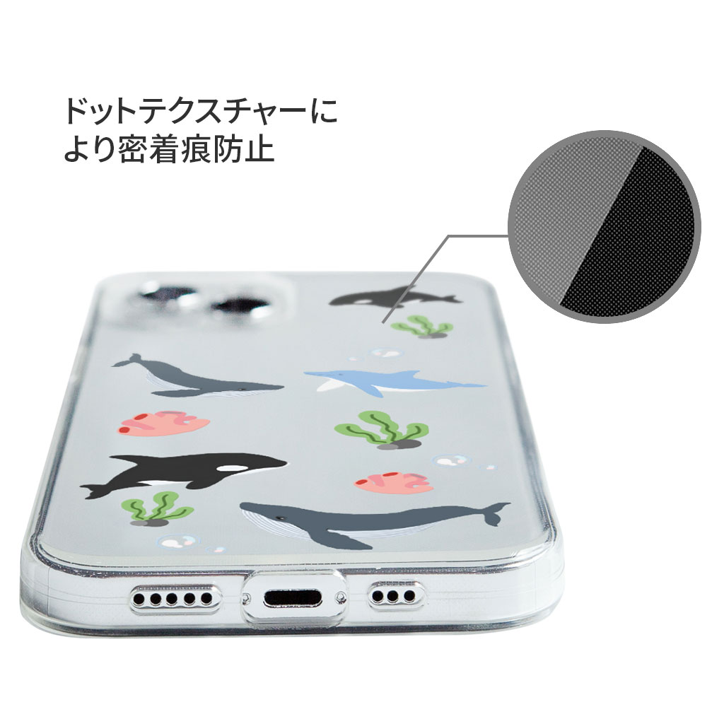 背面の内側にドットテキスチャーが施され、密着痕を防止して端末に貼り付くことがありません。