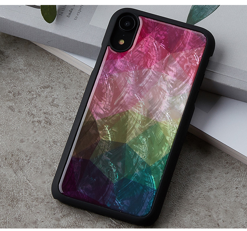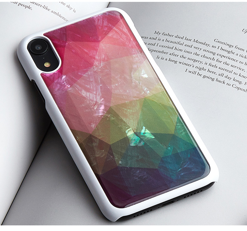 ikins(アイキンス)の「天然貝ケース ウォーターフラワー」は、水の中で絵の具が自然に広がる現象をパステル系の色で表現したみずみずしいデザインが特徴のケースです。