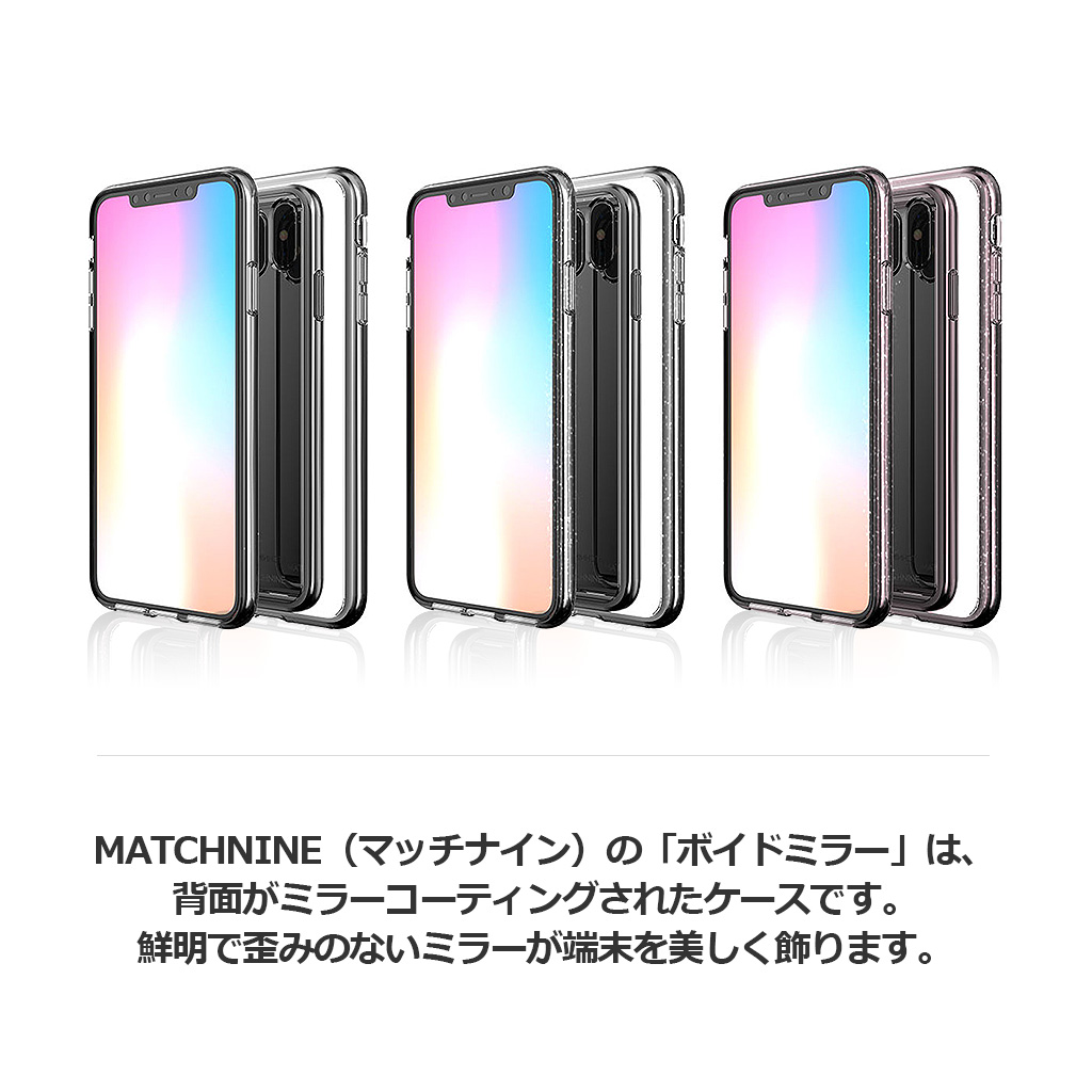 MATCHNINE(マッチナイン)の「ボイドミラー」は、背面がミラーコーティングされたケースです。鮮明で歪みのないミラーが端末を美しく飾ります。