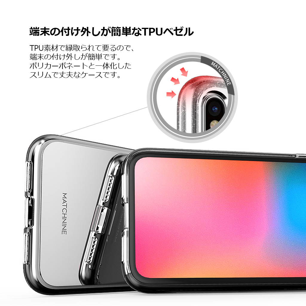 TPU素材で縁取られているので、端末の付け外しが簡単です。ポリカーボネートと一体化したスリムで丈夫なケースです。
