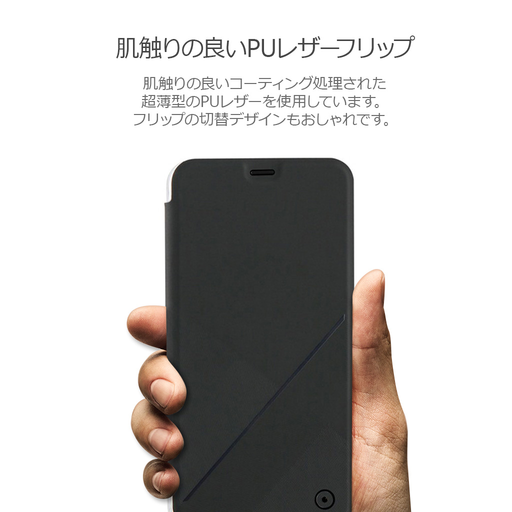 肌触りの良いコーティング処理された超薄型のPUレザーを使用しています。フリップの切替デザインもおしゃれです。