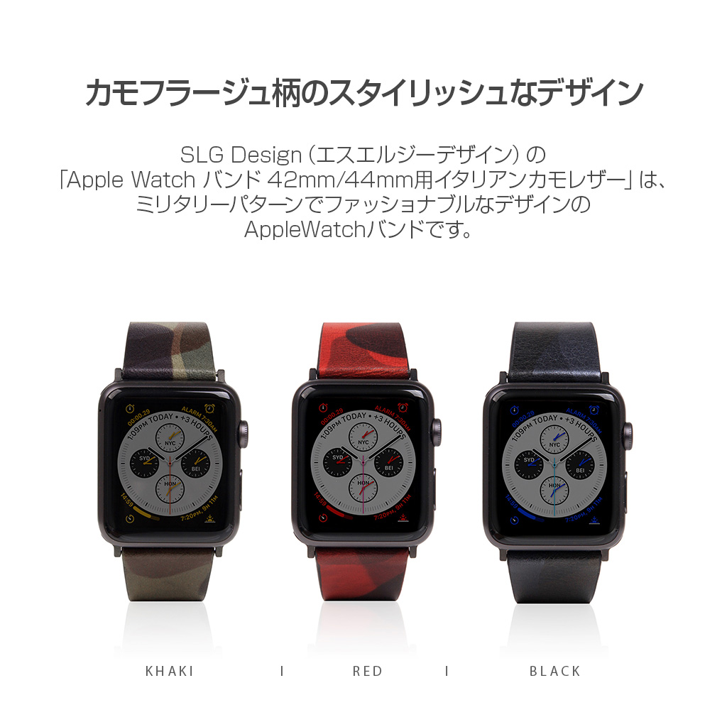 SLG Design(エスエルジーデザイン)の「Apple Watch バンド 42mm/44mm用 イタリアンカモレザー」は、ミリタリーパターンでファッショナブルなデザインのAppleWatchバンドです。