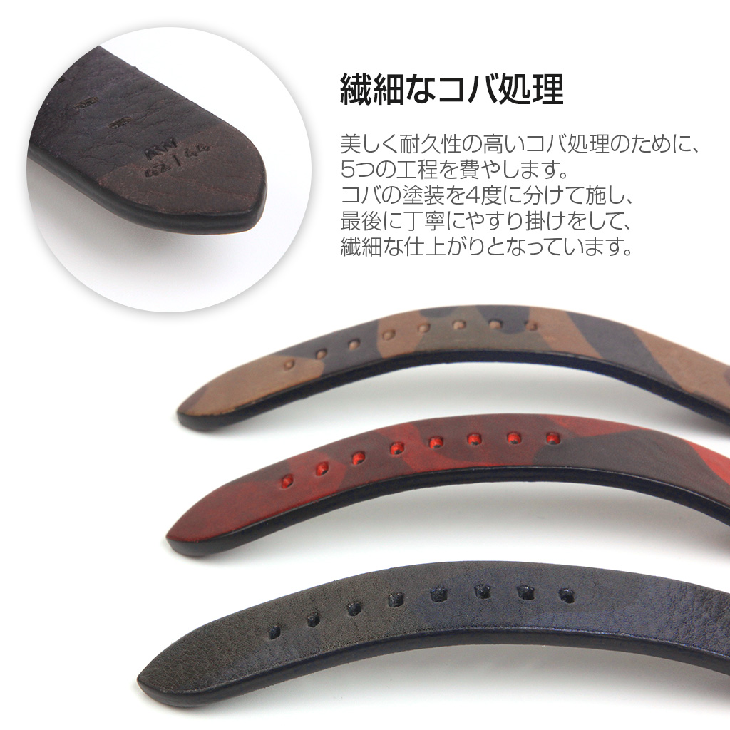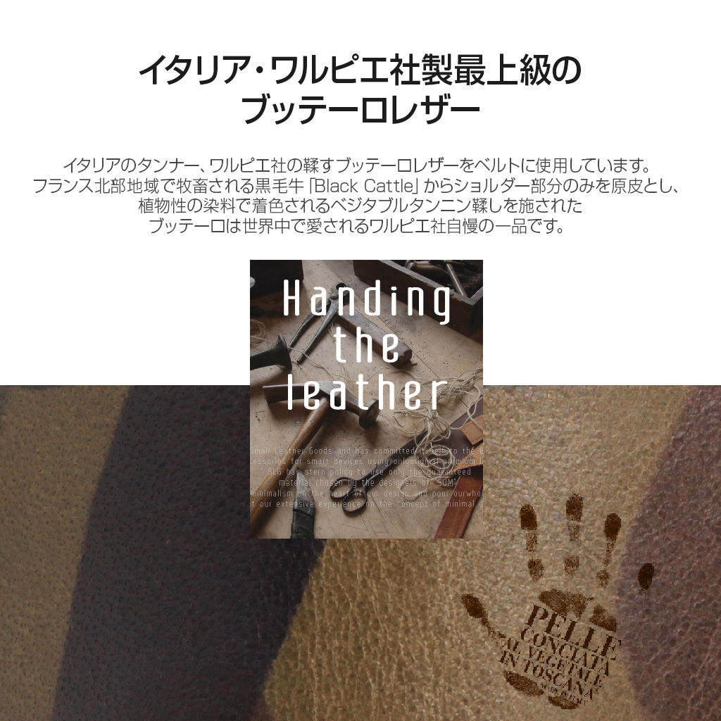 イタリアのタンナー、ワルピエ社の鞣すブッテーロレザーをベルトに使用しています。