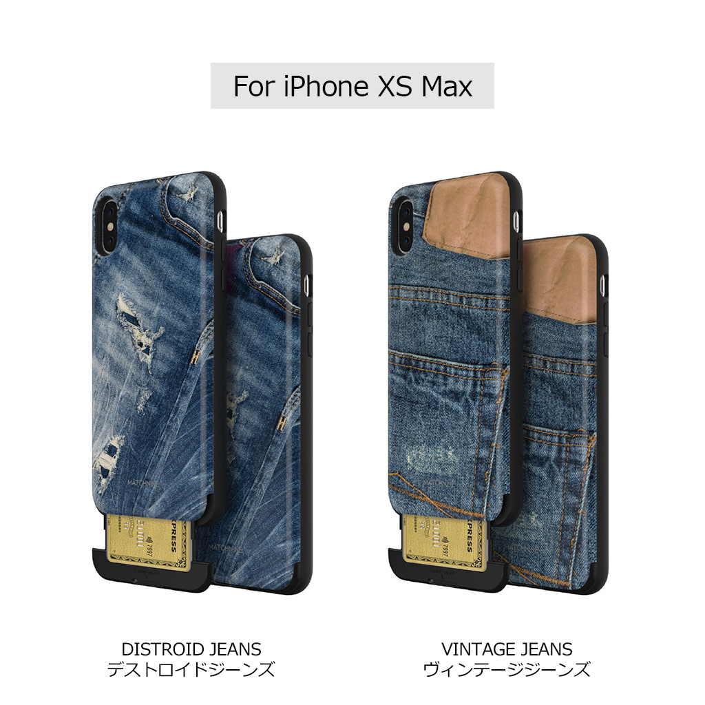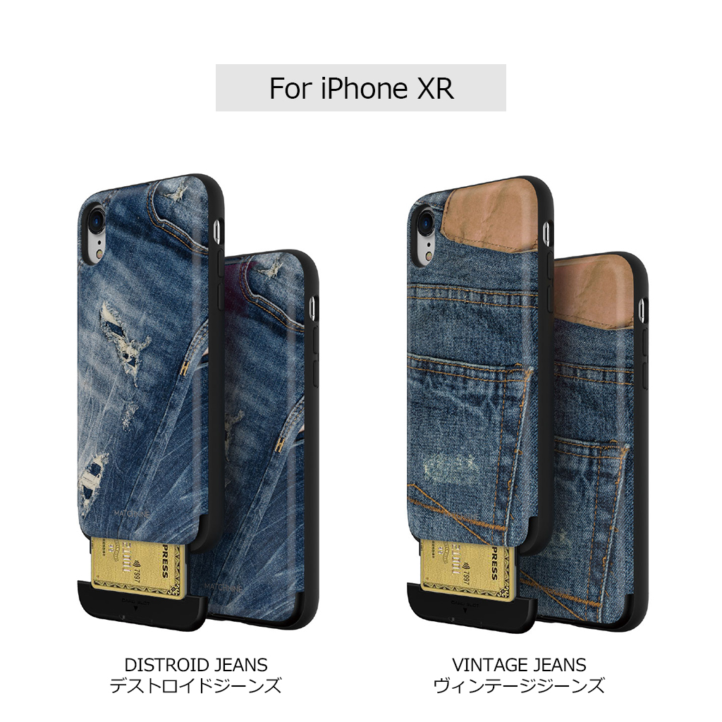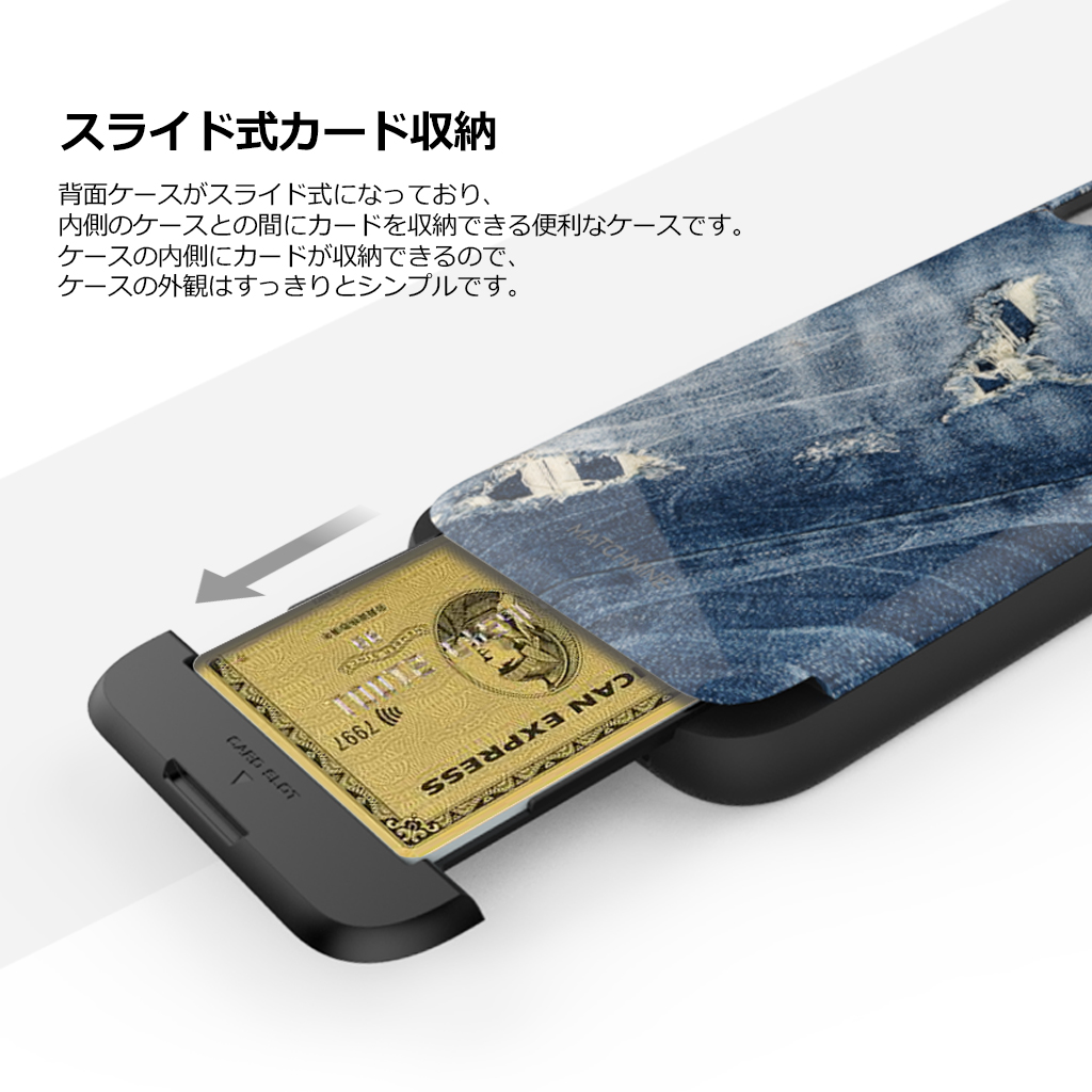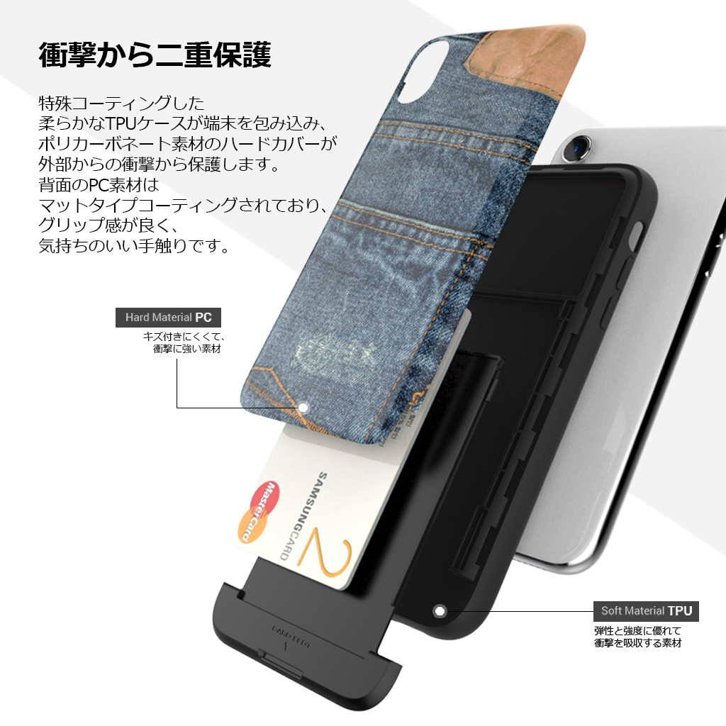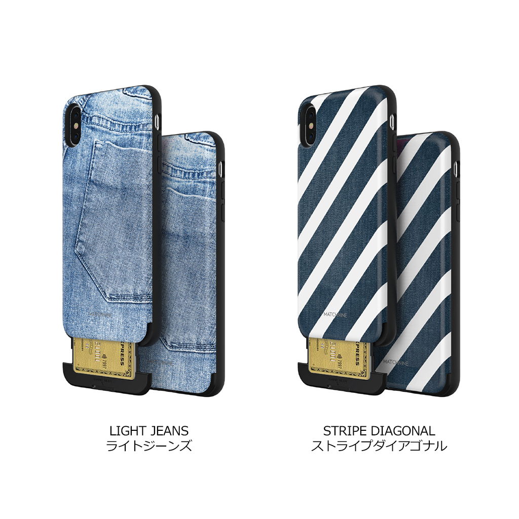MATCHNINE(マッチナイン)の「カードラ スロットジーンズコレクション」は、デニム柄のシンプルなTPUとポリカーボネートの二重構造背面ケースです。