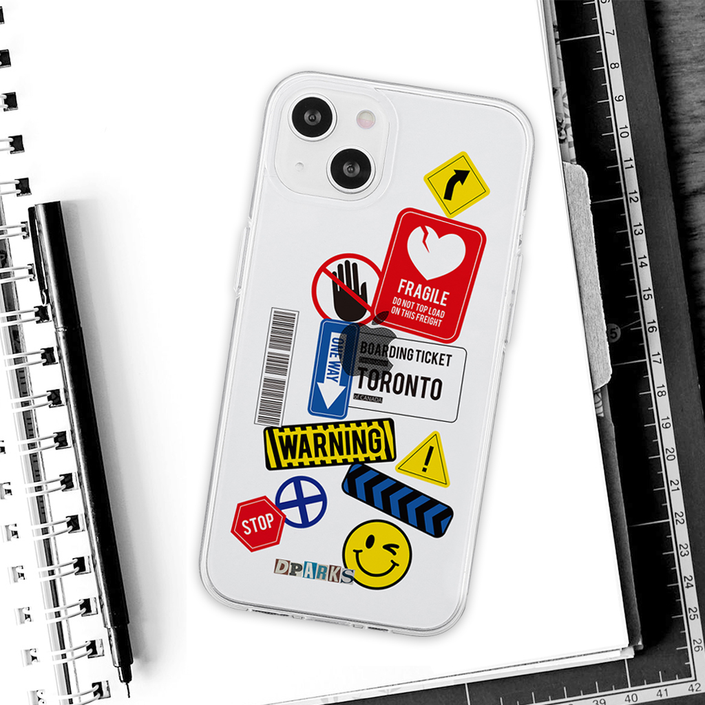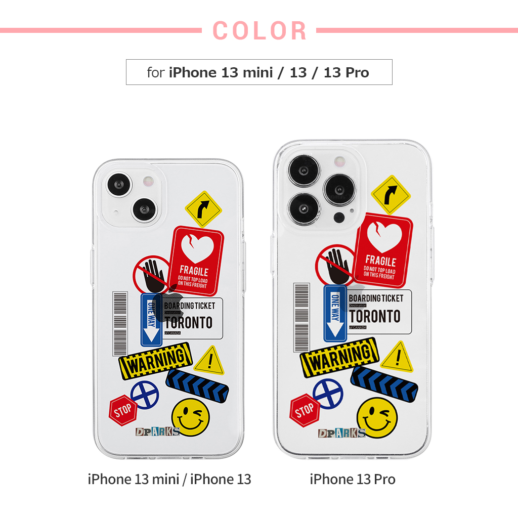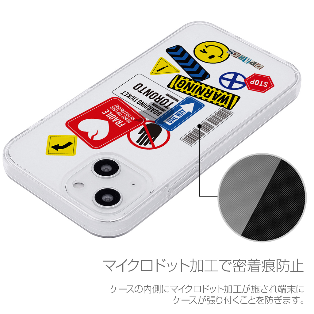 iPhone 13 Pro ケース ソフト クリア バックカバー Dparks TAG STICKER Warning 【 iPhone 13 / 13 Pro / iPhone 13 mini 】 背面カバー型 アイフォンケース