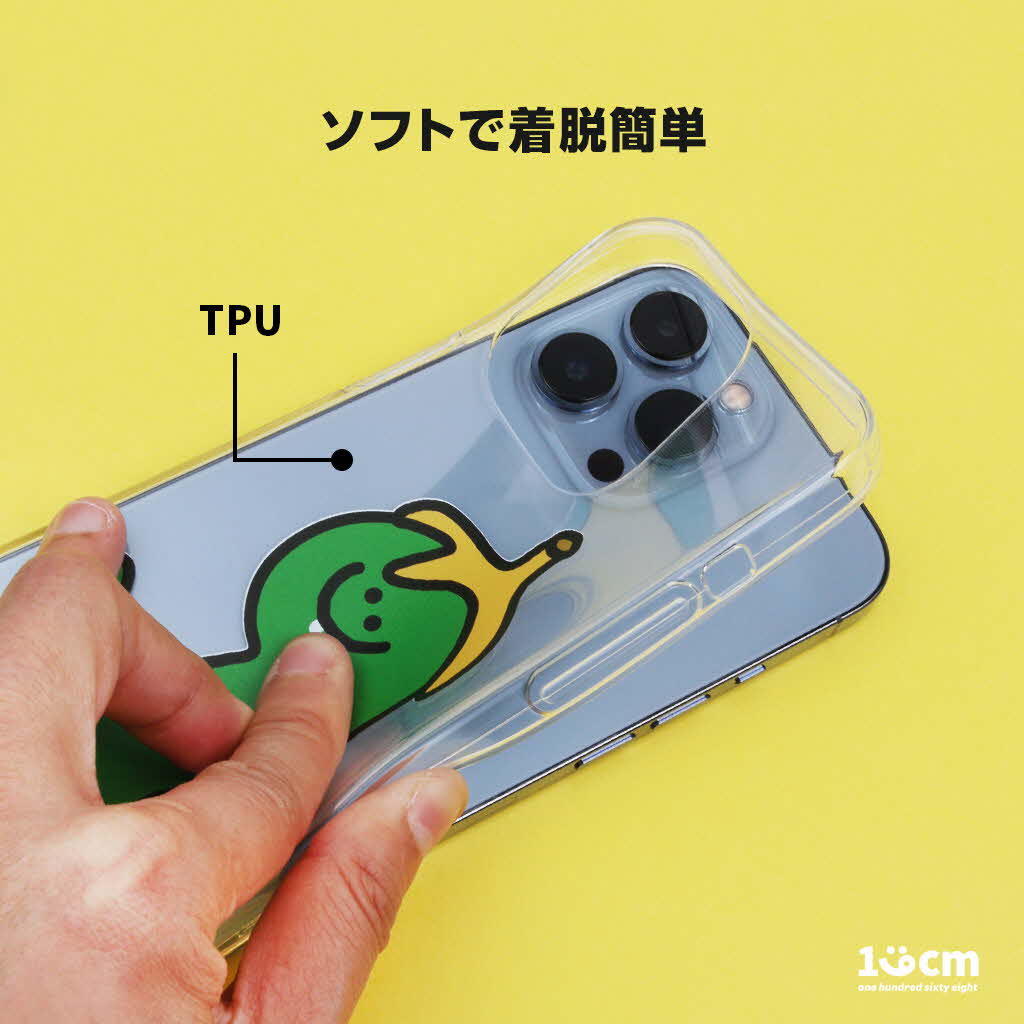 168cm「ソフトクリアケース」は、透明TPUケースに可愛いイラストが入ったケースです。