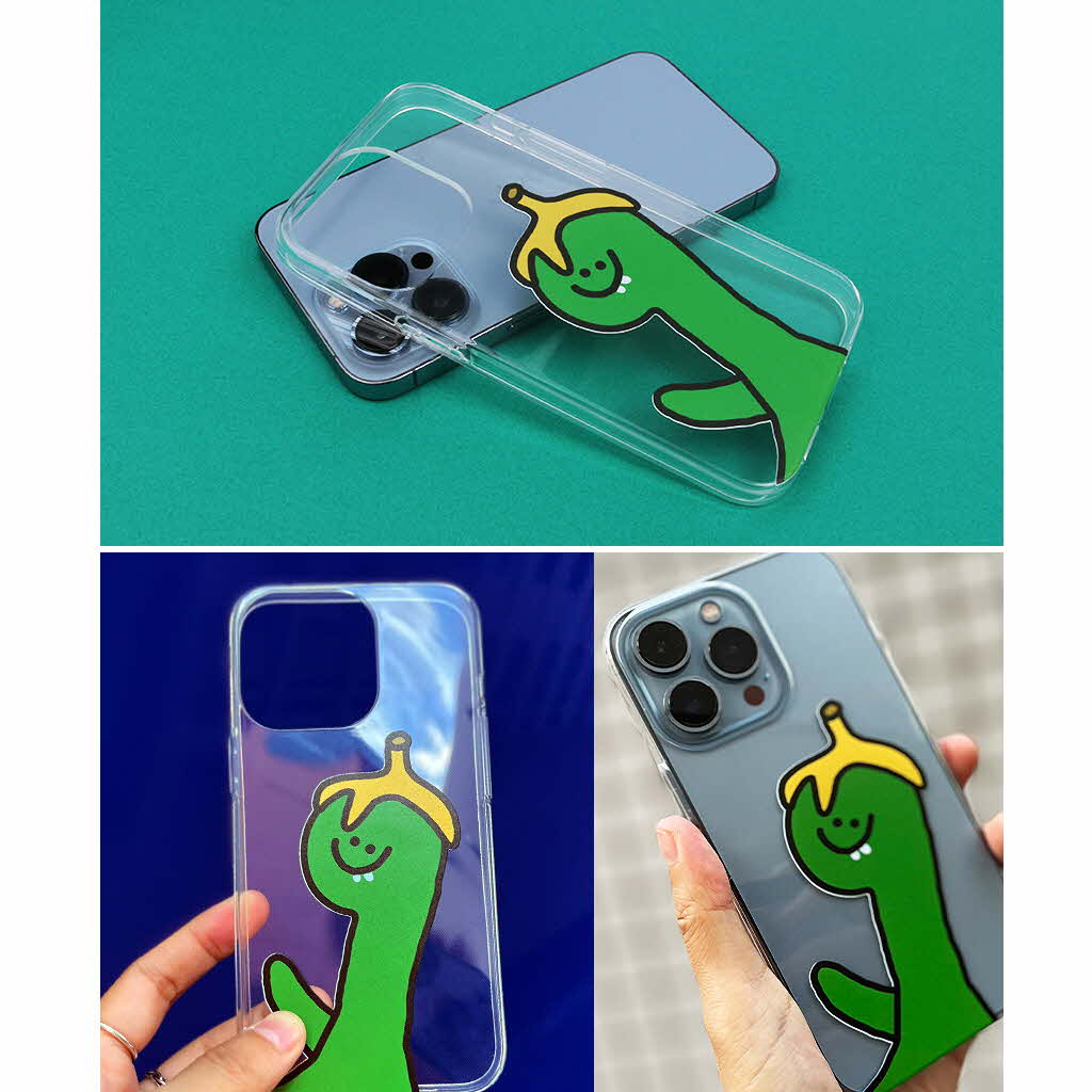 168cm [ iPhone 14 / 14 Pro / iPhone 13 ] ソフトクリアケース Green Olly with バナナ