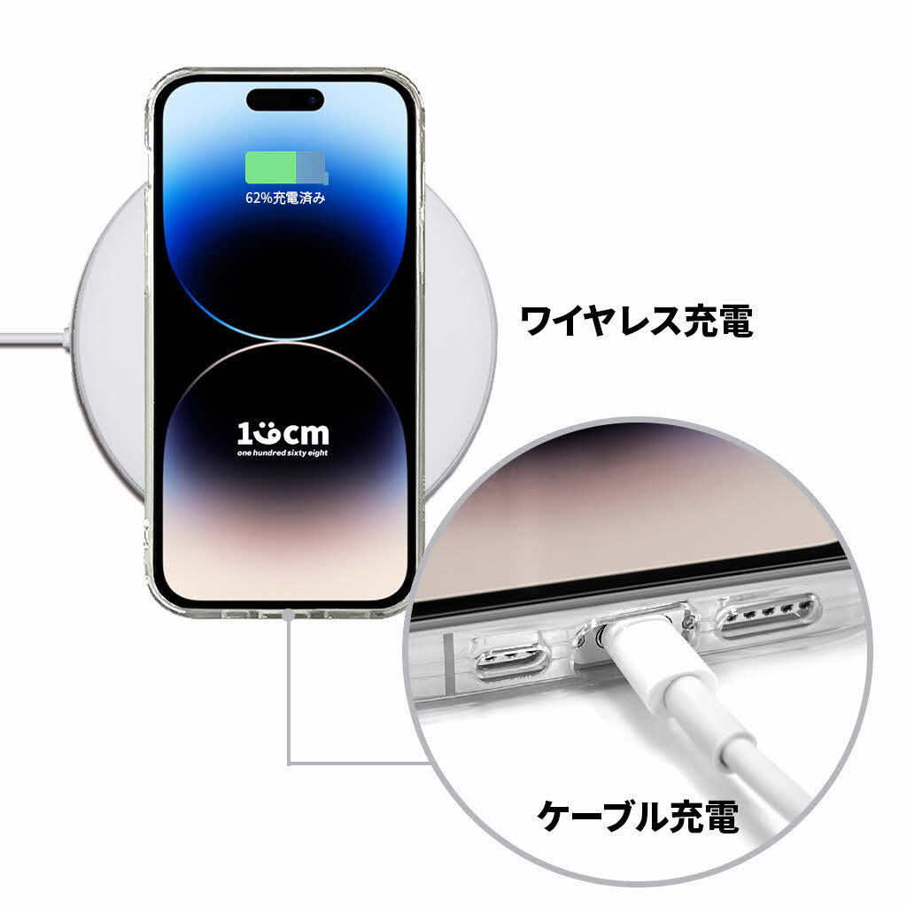 ワイヤレス充電・ケーブル充電両方対応 ケースをつけたままQi(チー)対応ワイヤレス充電とケーブル充電が可能です。
