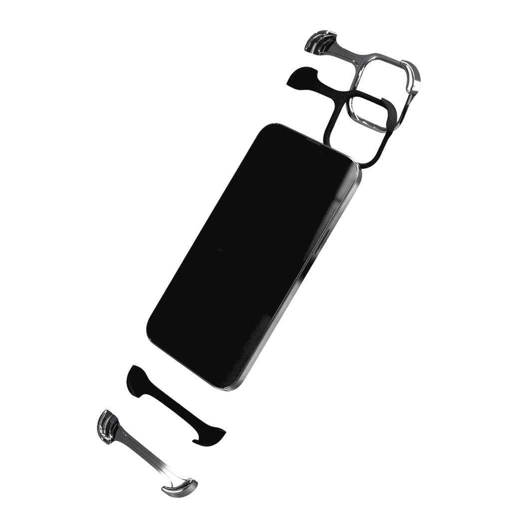 強度に優れた金属素材と柔軟なSEBS素材、二層のレイヤーで衝撃を吸収し分散。
