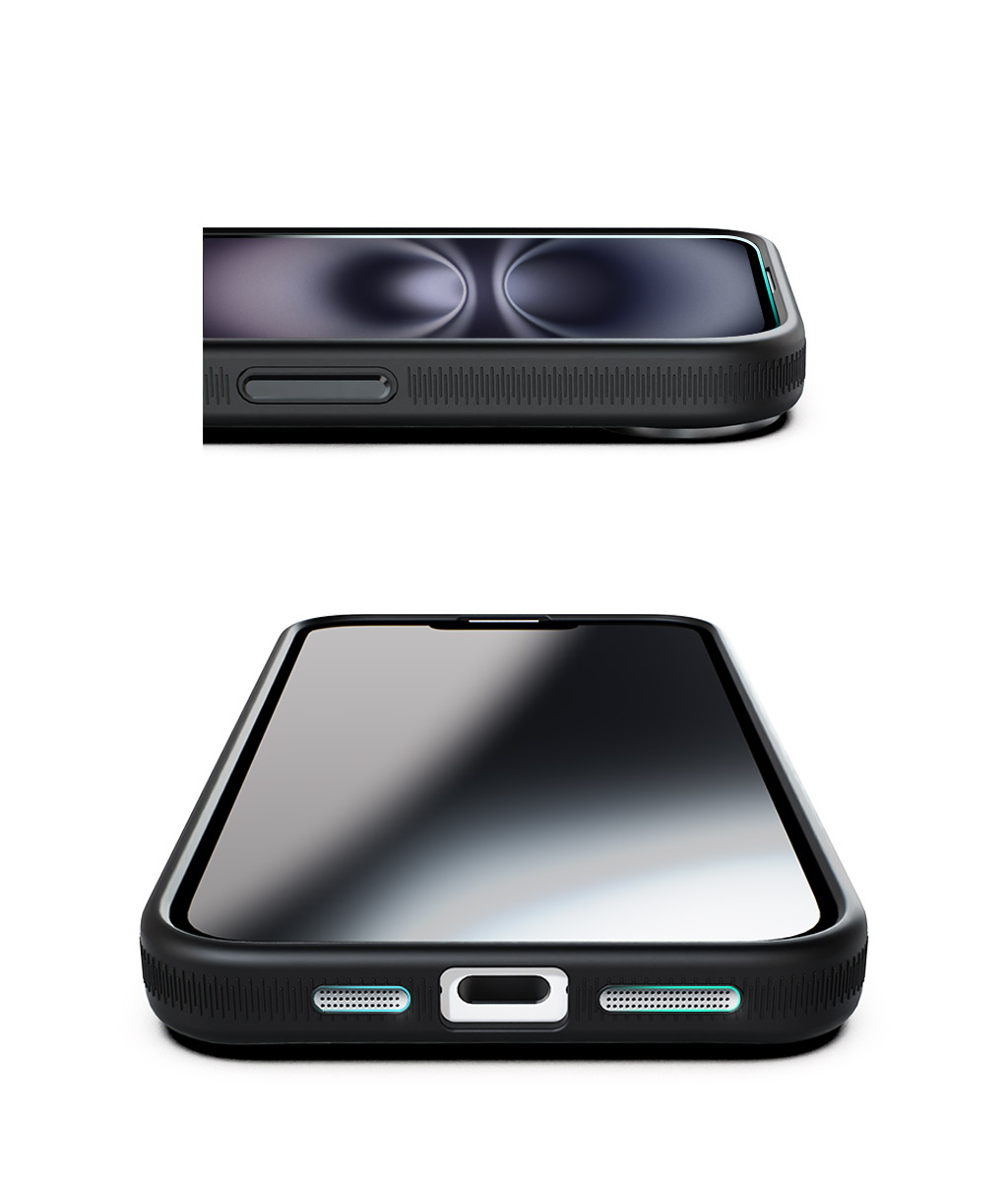 ケースの四隅にエアークッションを設けています。割れやすいコーナー部分に対する強い衝撃を吸収し、iPhoneを保護します。
