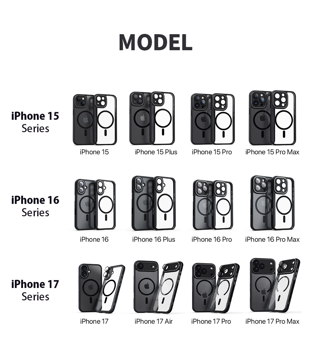 対応機種:iPhone 17 / iPhone Air / iPhone 17 Pro / 17 Pro Max / iPhone 16 / iPhone 16 Pro / iPhone 16 Plus / iPhone 16 Pro Max / iPhone 15 / iPhone 15 Plus / iPhone 15 Pro / iPhone 15 Pro Max