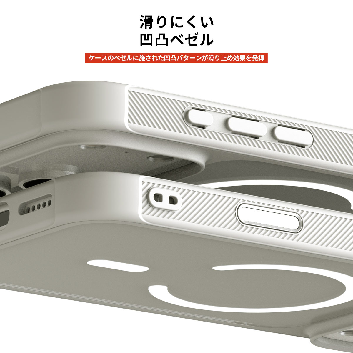 ケースのベゼルに施された凹凸パターンが滑り止め効果を発揮し、スマートフォンの持ちやすさを向上。落下の心配を軽減します。
