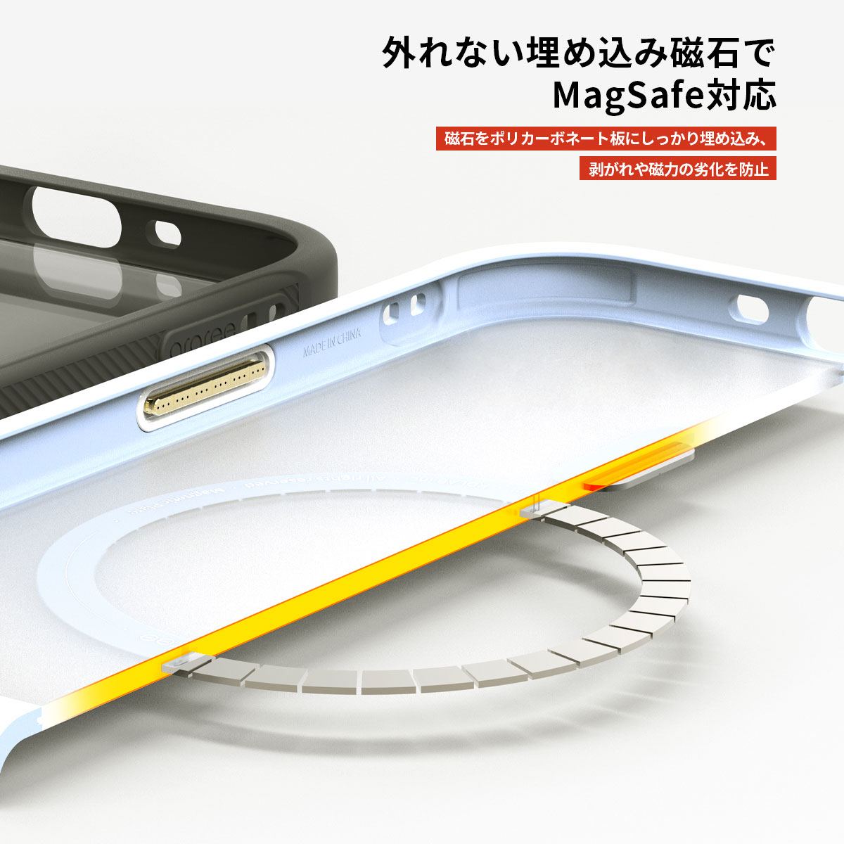 磁石をポリカーボネート板にしっかり埋め込み、剥がれや磁力の劣化を防止。長期間の使用でも安定した固定力を発揮し、MagSafe対応アクセサリーを快適にお使いいただけます。