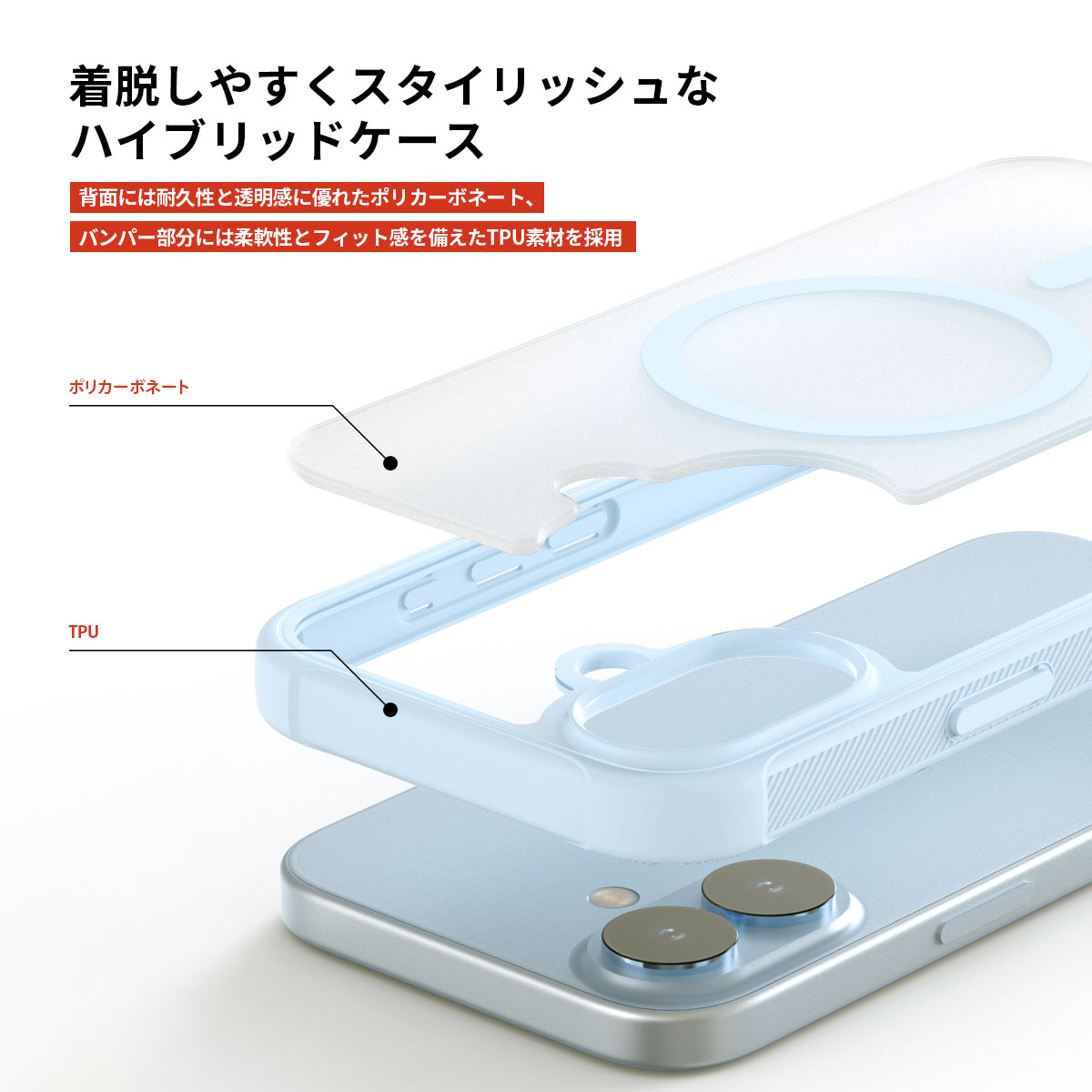 背面には耐久性と透明感に優れたポリカーボネート、バンパー部分には柔軟性とフィット感を備えたTPU素材を採用。異なる素材を組み合わせたハイブリッド構造により、デバイスを保護しながら美しいデザインを引き立てます。