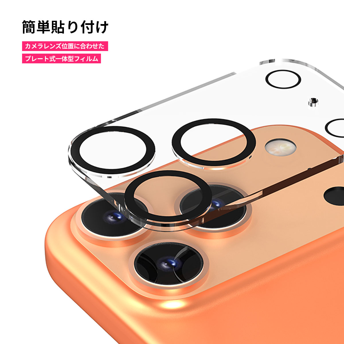 カメラレンズ位置に合わせたプレート式一体型フィルムです。一度でぴったり貼り付けられる、簡単設計です。
