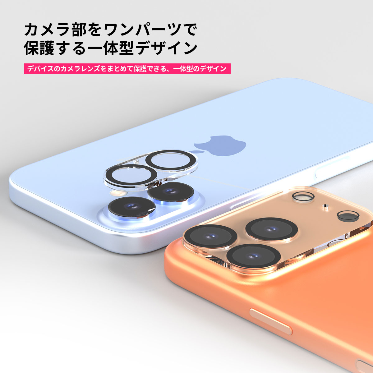 デバイスのカメラレンズをまとめて保護できる、一体型のデザインです。それぞれのカメラに個別に貼り付ける必要がなく、簡単に取り付け可能です。