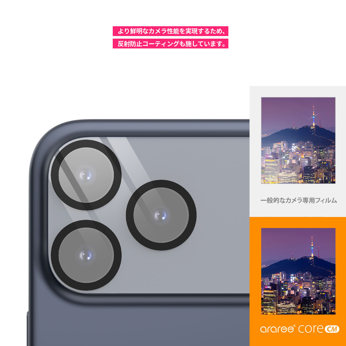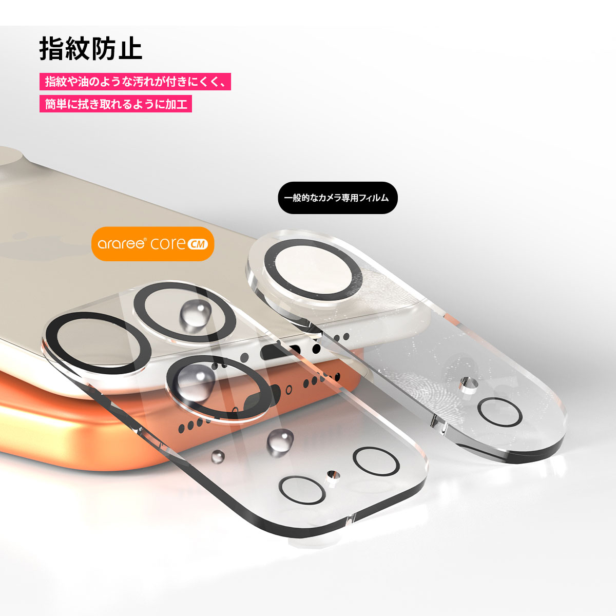 arareeの「CORE CM」は、透過率の高い強化ガラスで、カメラ全体をワンパーツで保護するフルカバータイプのカメラ専用ガラスフィルムです。