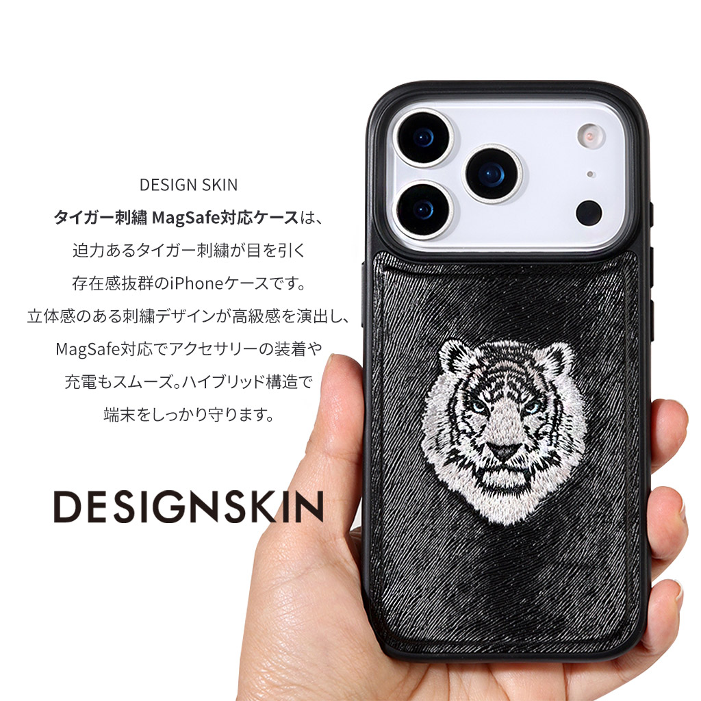 [ iPhone 17 / 17 Pro 用] タイガー 刺繡 MagSafe対応ケース [ 着脱簡単 ハイブリッド ] スマホケース アイホンカバー