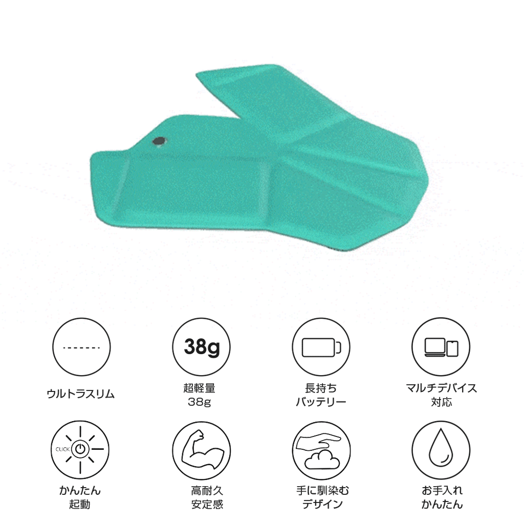 USBレシーバー不要で、Bluetoothでデバイスに接続します。1度接続すれば、つまんで立体化するだけで再接続します。