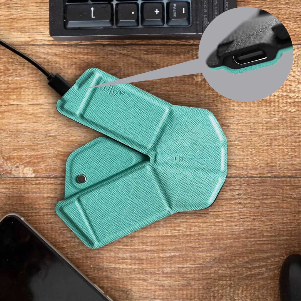 表面素材にはヴィーガンレザーを採用し、従来のマウスとは全く異なる質感を実現しました。カラーごとに異なる仕上げで、ユニークな見た目と感触を楽しめます。