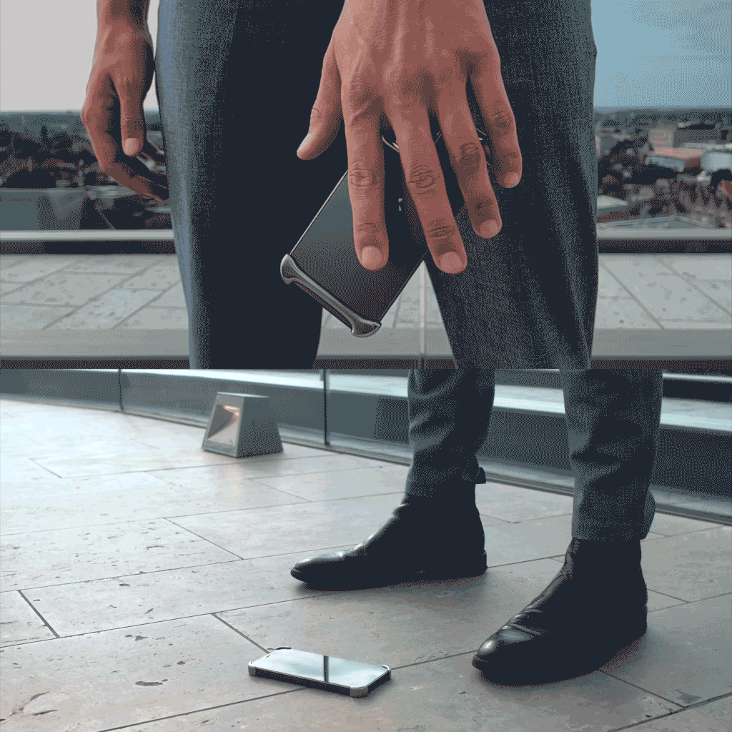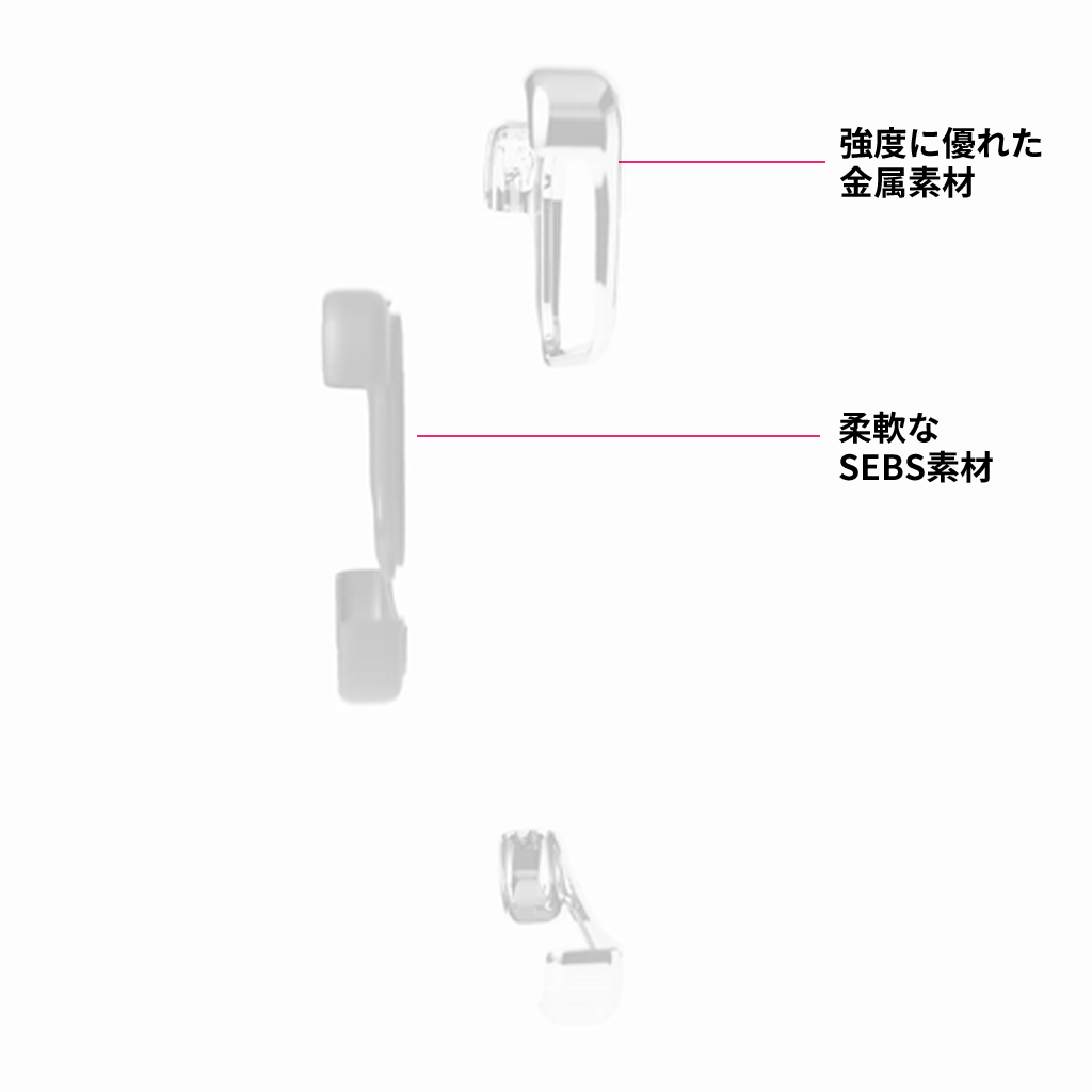 強度に優れた金属素材と柔軟なSEBS素材、二層のレイヤーで衝撃を吸収し分散。