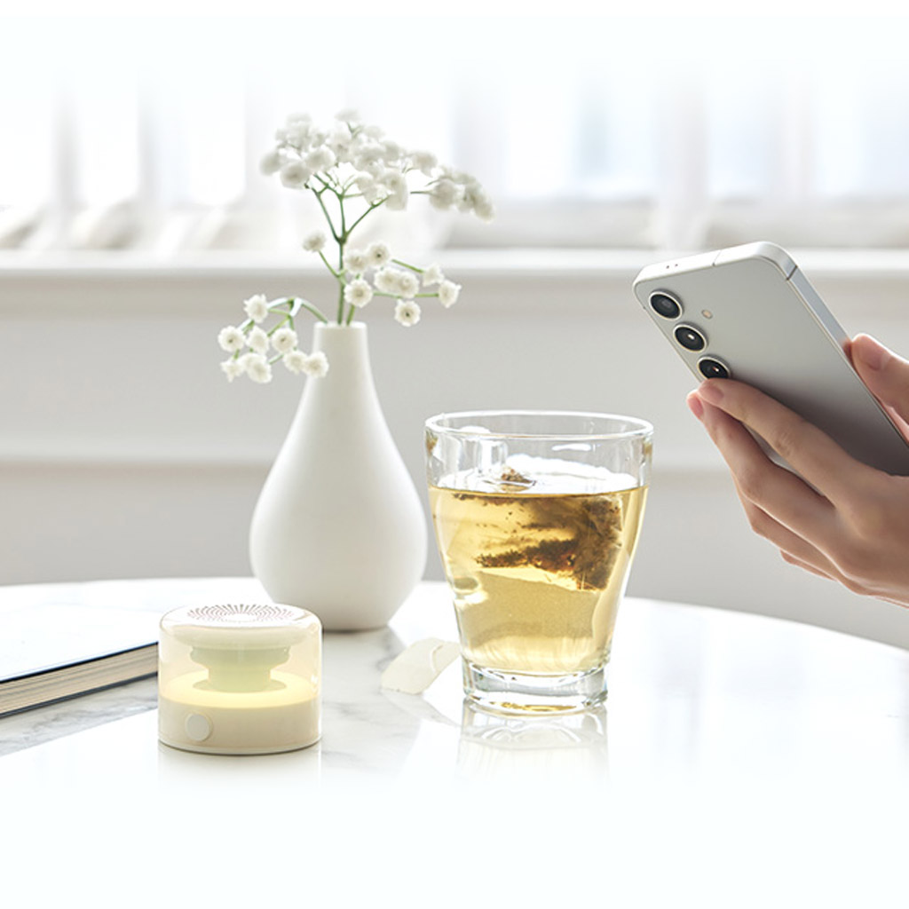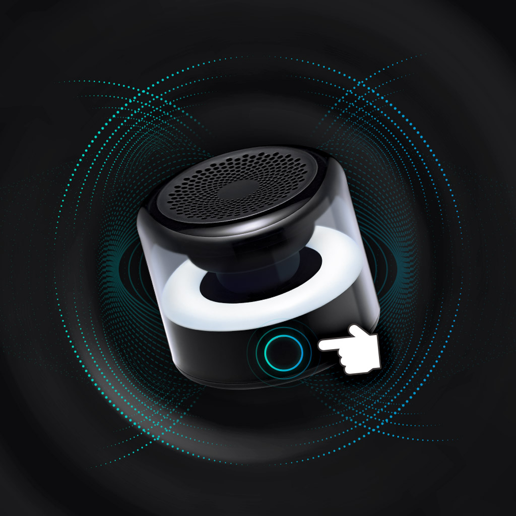 複雑な操作は不要。ひとつのボタンで、電源のオン/オフから音楽再生、ムードライト切替まで、すべての操作が可能です。