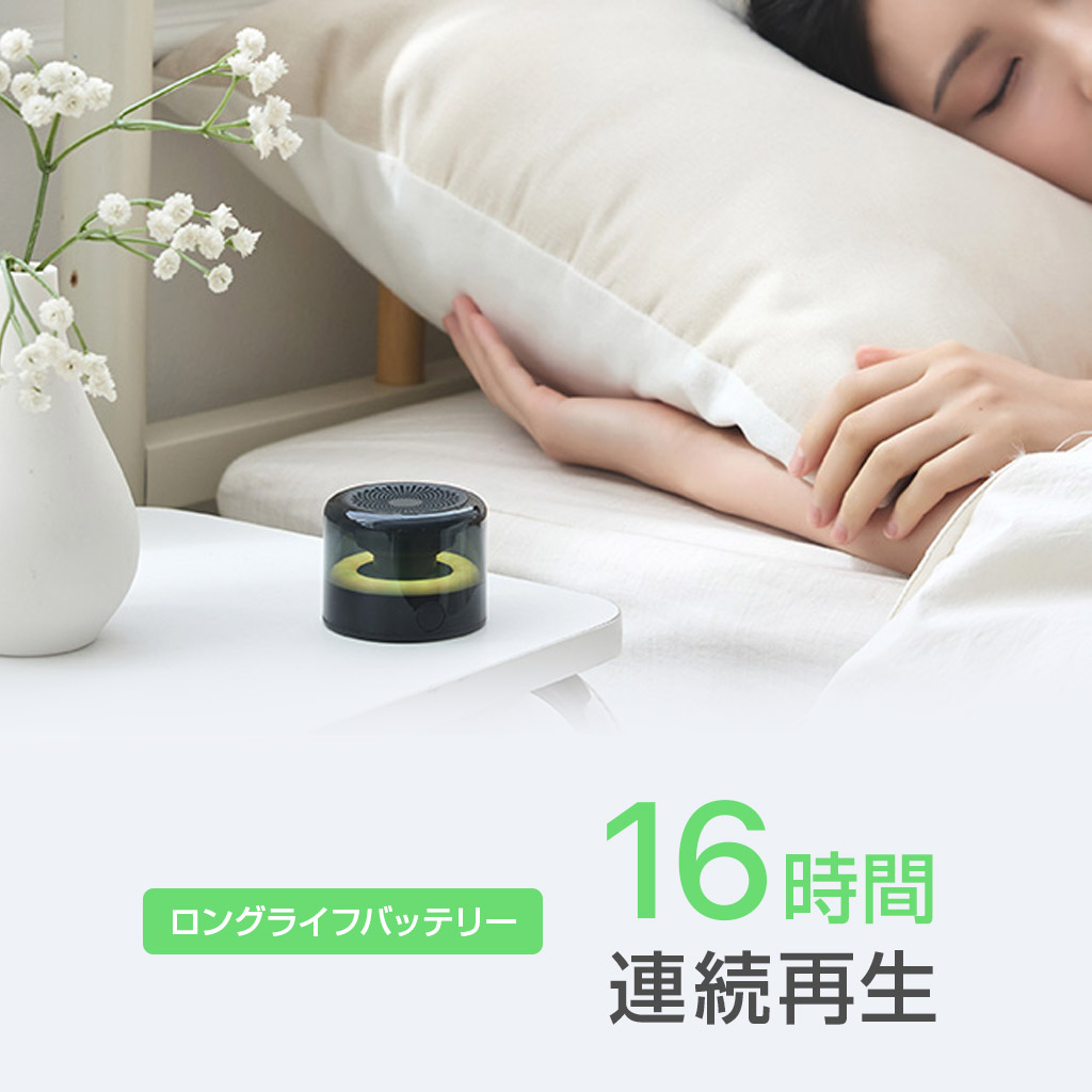 800mAhの大容量バッテリーを搭載し、約16時間の連続再生が可能です。充電切れを気にせず、長時間の作業やアウトドアイベントでも安心して使えます。