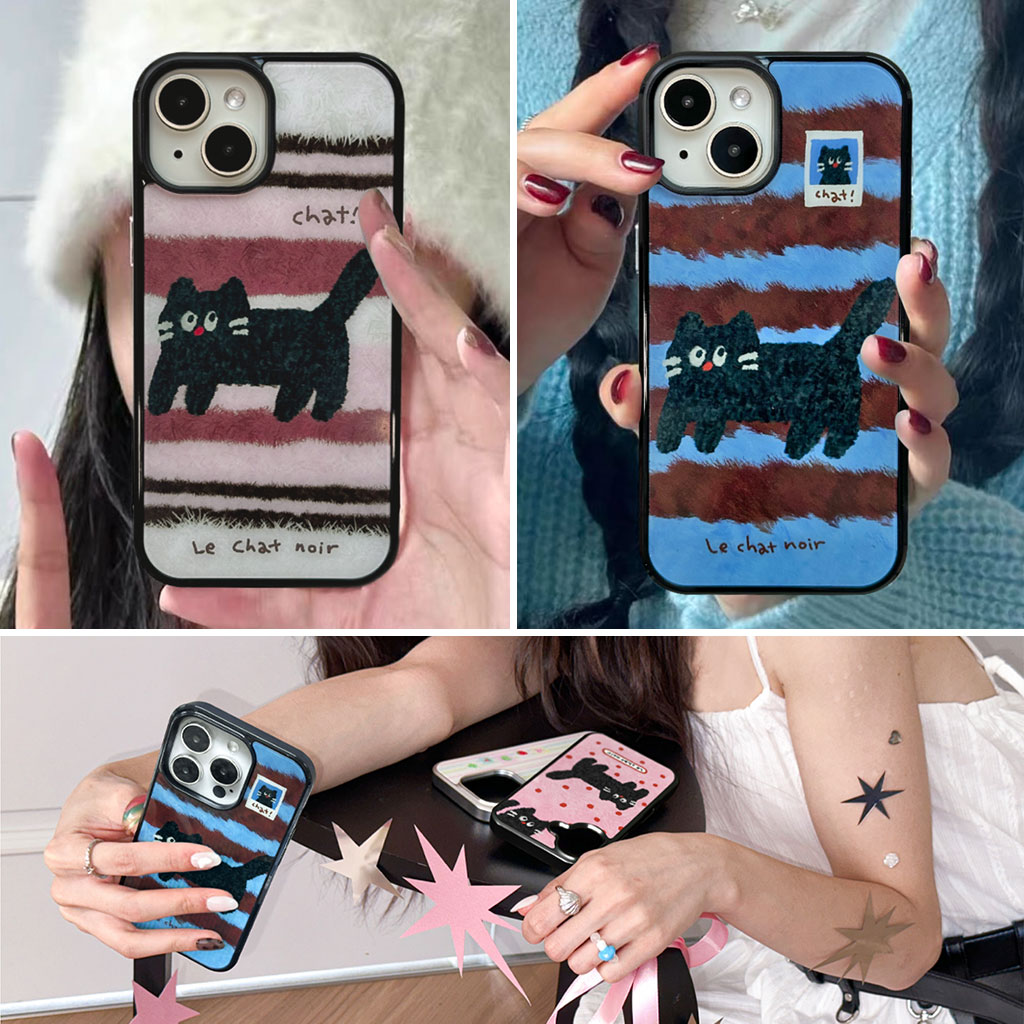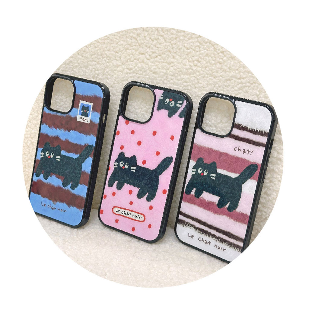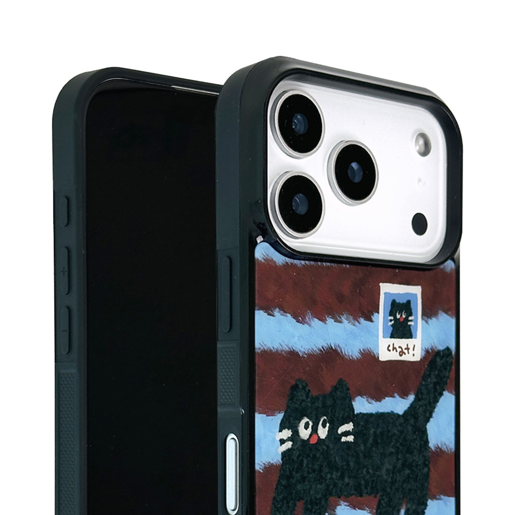 手描き風のやさしい黒ねこのイラストと、ガラスのような艶感が映えるグロッシー仕上げが特徴的なiPhoneケースです。MagSafeに対応し、実用性とデザイン性を兼ね備えています。