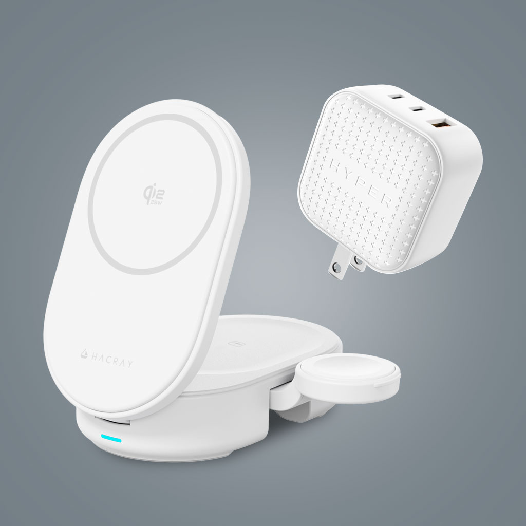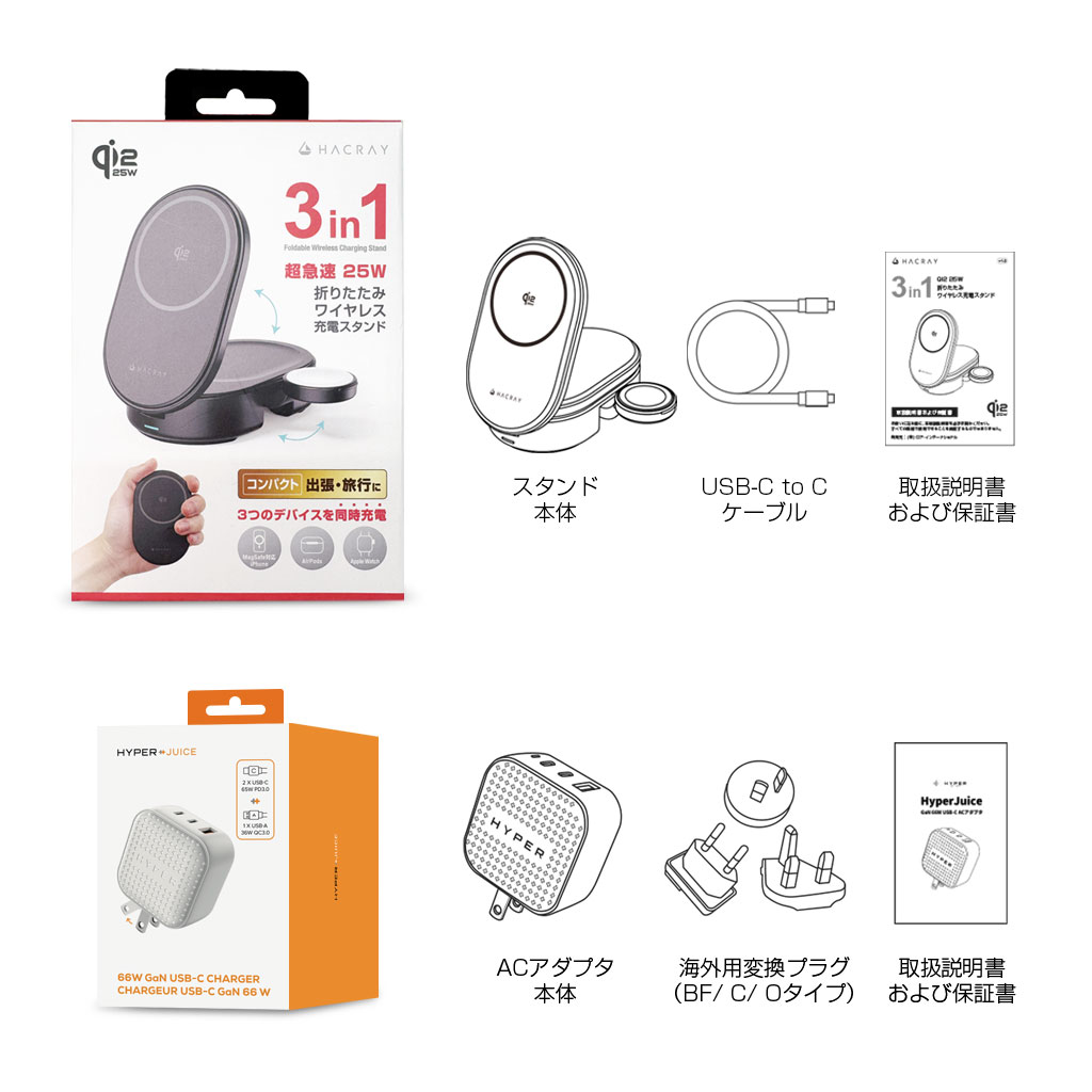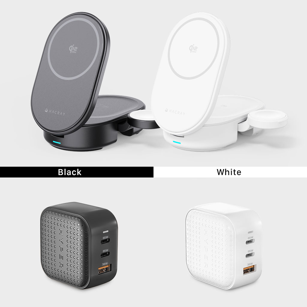 Hacray 3in1 折りたたみワイヤレス充電スタンドとHyperJuice GaN 66W USB-C ACアダプタが同梱されるセット販売商品です。