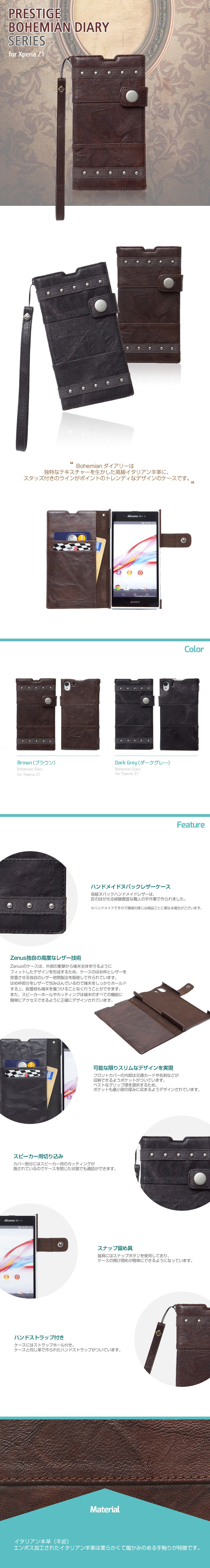 docomo au 【Xperia Z1】ZENUS Prestige Bohemian Diary (プレステージ ボヘミアンダイアリー ) スナップボタン ストラップ付 本革